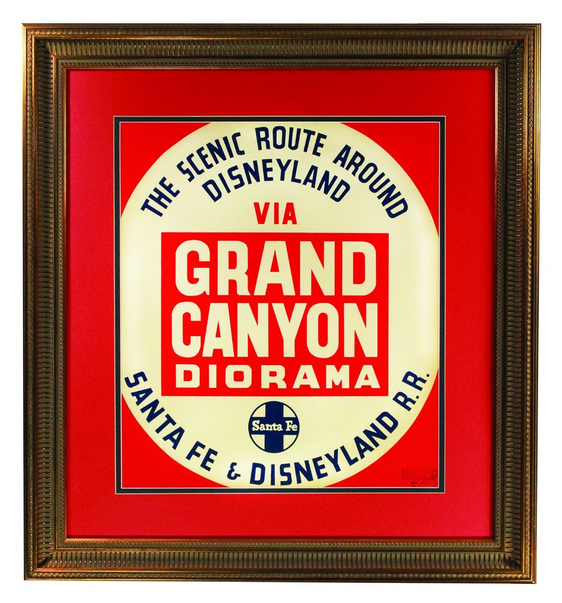 (Disneyland, 1958) A stunning original hand-silkscreened color lamppost shield for the "Grand Canyon Diorama" attraction at Disneyland. Although not as well-known as the attraction posters, and certainly more rare, shields like these were placed throughout the park and advertised many of the most popular attractions. Measures 16"x18". In vintage fine condition, unexamined out of frame.