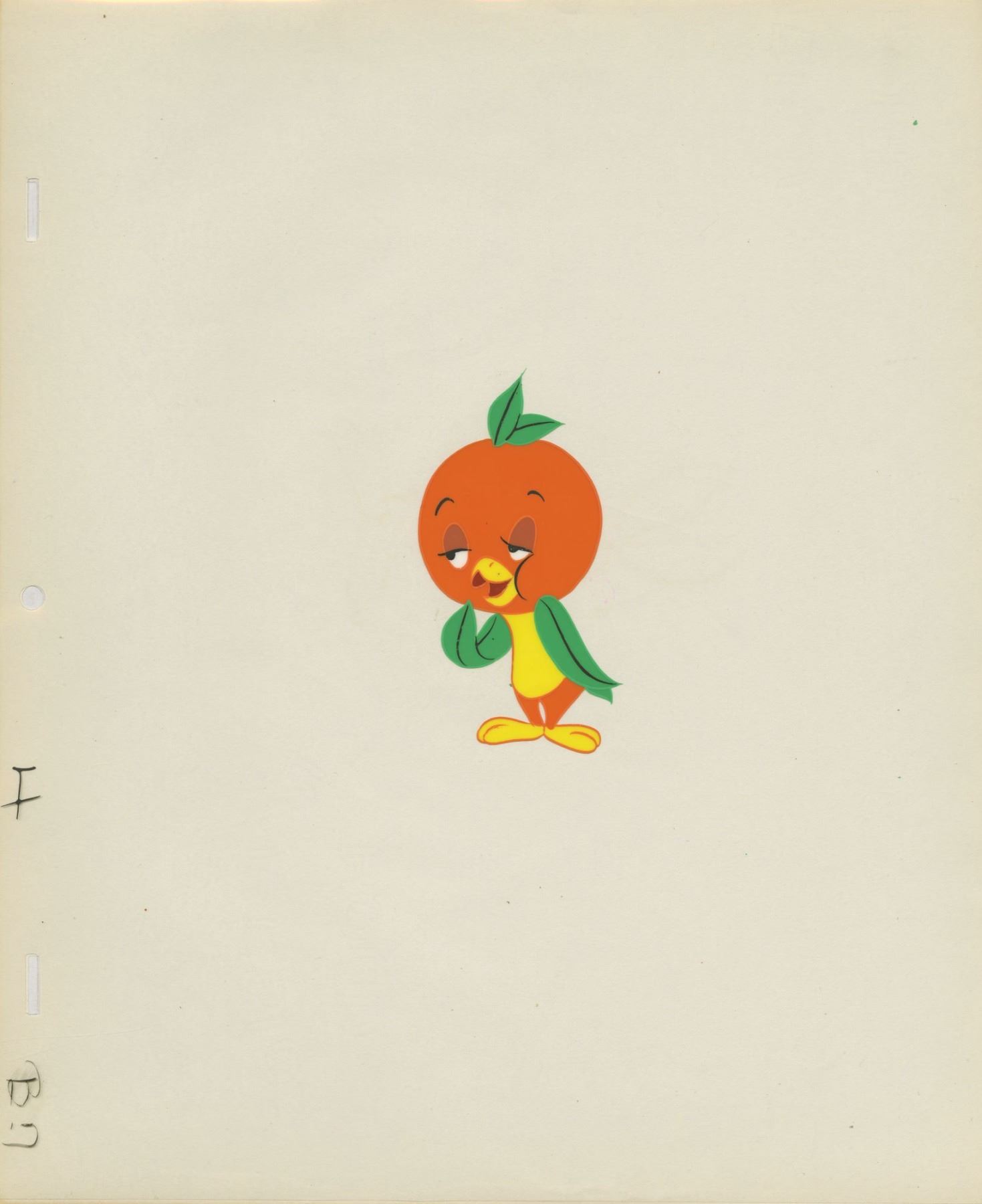 (Walt Disney World, 1970s) A charming group of (3) hand-painted animation cels of the Disney-created mascot of the Florida Citrus Commission, the Orange Bird. The cels are untrimmed and feature excellent full-body poses, with a character size of 4"x2.5" on 10" x12" animation cels. The group is in very good condition with minor wear.