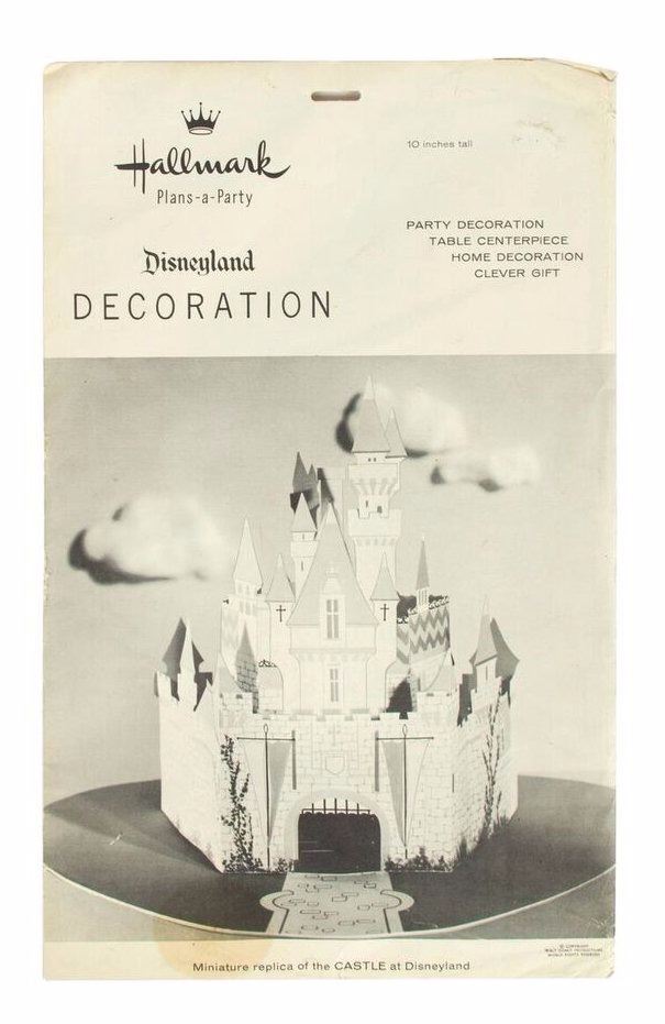 (Disneyland, c.1956) A charming replica of Disneyland's "Sleeping Beauty Castle" created by Hallmark. This paper replica is unopened in its original packaging. This item measures 16"x10" in its packaging and stands 10" tall when assembled. This item is in very good condition with some edge-wear to the packaging and a spot of discoloration near the bottom.