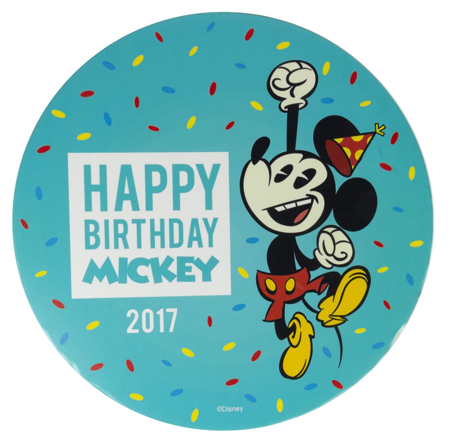 (Walt Disney Studios, 2017) A large sign created to celebrate Mickey Mouse's birthday at the Disney Parks. This sign was created for use at Disneyland on November 18, 2017, which marked the 89th anniversary of the original debut of Steamboat Willie. The large sign measures 24" in diameter and is in very good condition with minor surface and edge wear from use.