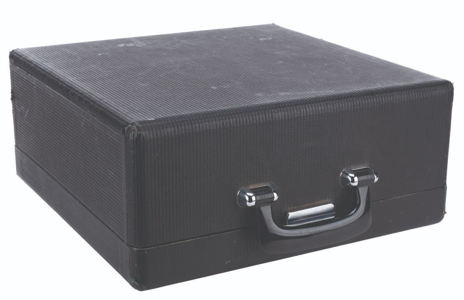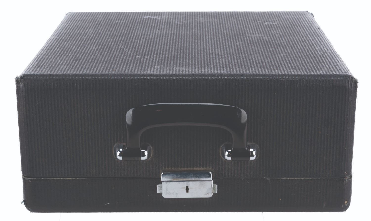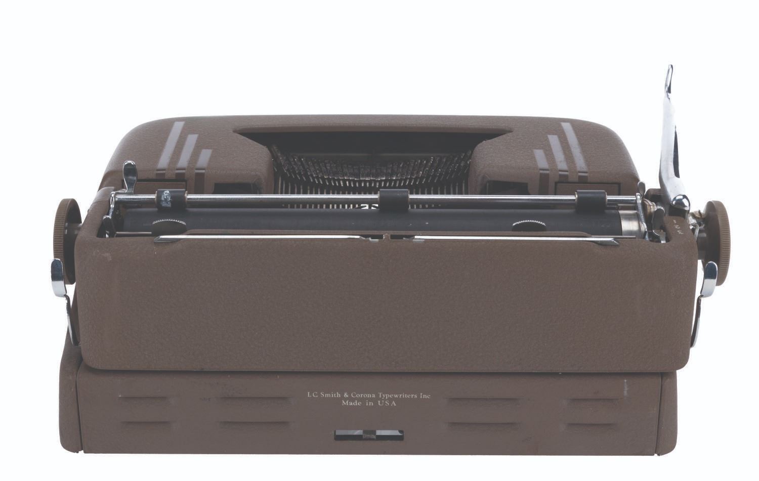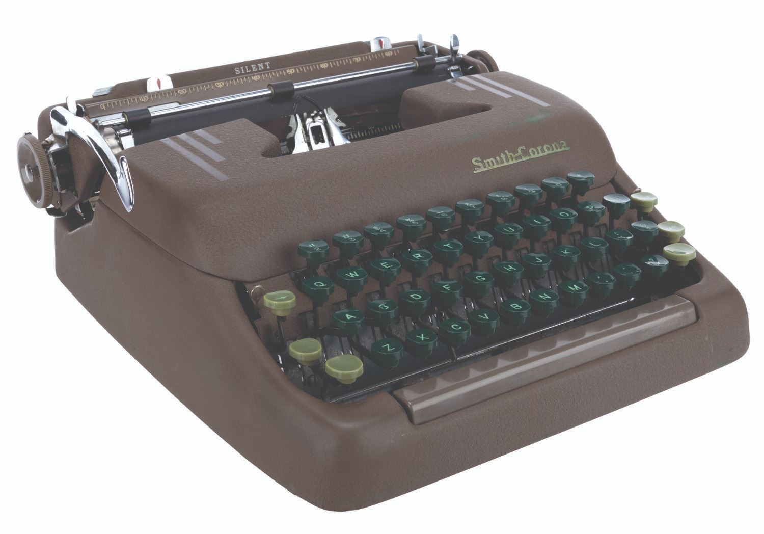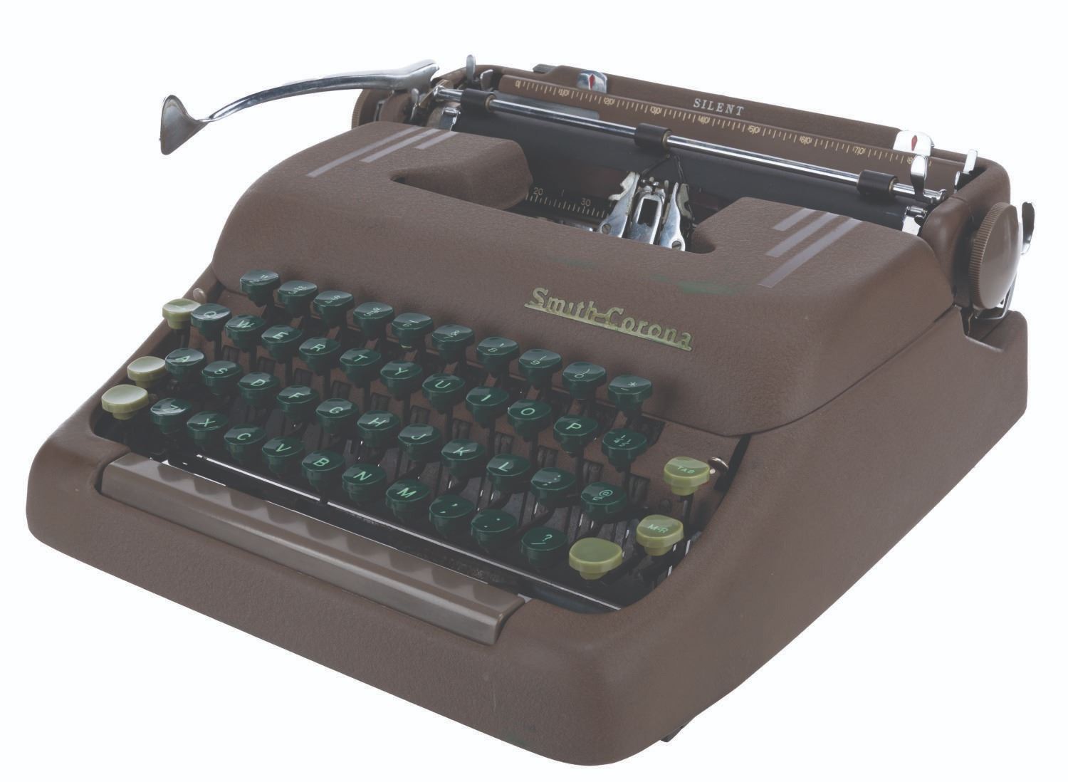 (Smith Corona, 1950s) A Smith Corona typewriter from the collection of Disney Legend Harper Goff. The Smith Corona Silent 5S is a legend in its own right, featuring floating shift and sound dampening to operate at lower levels than standard typewriters. The typewriter has been minimally tested and operates as expected, but may require service for full functionality. Measuring 6.25" x 13.5" x 14" in its original carry case, the typewriter is in very good condition with light scuffing and wear from use, while the case exhibits edge wear, scuffing, soiling, and material loss to the corners.