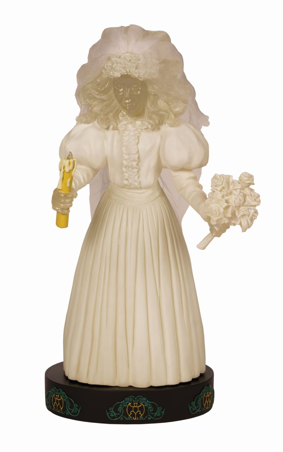 (Walt Disney World, 2004) A very rare light-up figure of the ghost bride from the Haunted Mansion. The figure was offered as part of the 999 Happy Haunts: A Ghoulish Gathering event at the Magic Kingdom, and includes battery-operated lights and sound of a bone-chilling heartbeat. Composed of resin, the figure stands 22.5" tall on its optional display base. The condition is very good with minor surface scuffs to the base, and the original packaging is included.