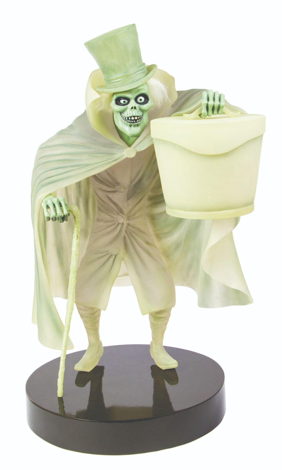 (Disneyland, 2005) A very rare light-up "Big Fig" created by Kevin Kidney and Jody Daily for the 50th Anniversary of Disneyland. Accomplished in resin and metal with faux hair, this Big Fig replicated the infamous Hatbox Ghost from the "Haunted Mansion" attraction. Battery operated lights give the Hatbox Ghost's eyes a ghoulish glow, with a convenient on-off switch hidden on the side of the head. This item measures an astounding 24" tall and is in very good condition.
