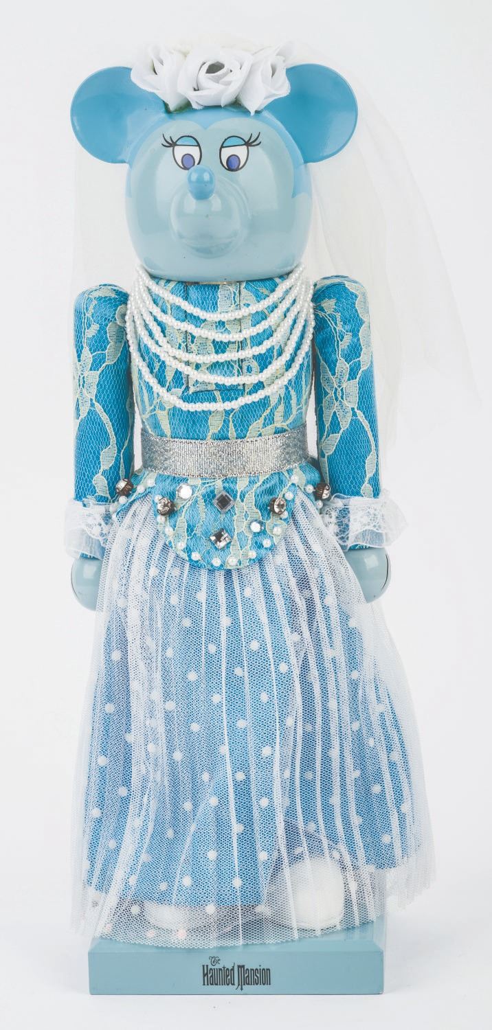(Disney Parks, 2015) A Minnie Mouse The Bride Nutcracker Figure designed by artist Suzanne Herbert. Measuring 4”x4”x13" tall, the mixed media wooden figure is in fine condition.