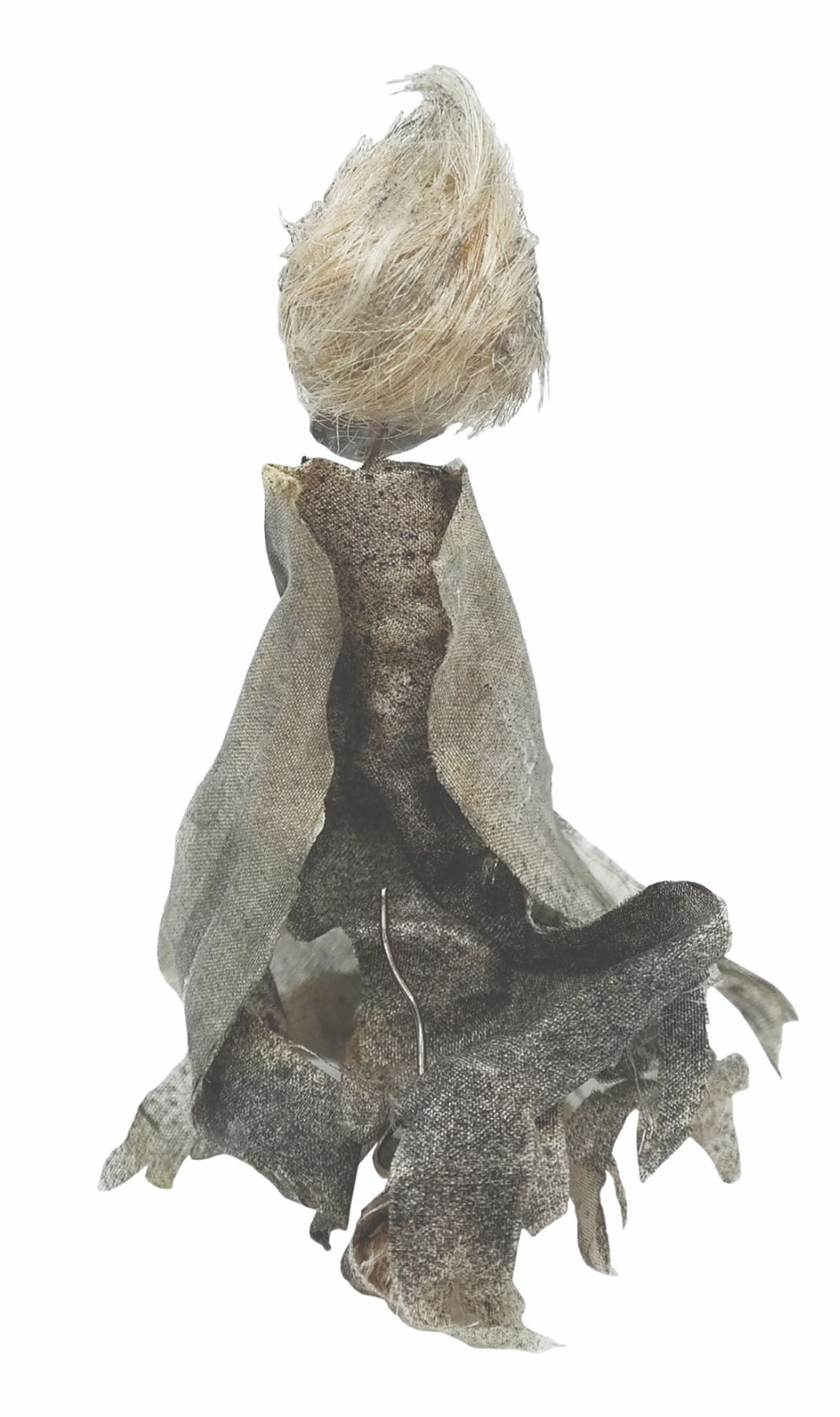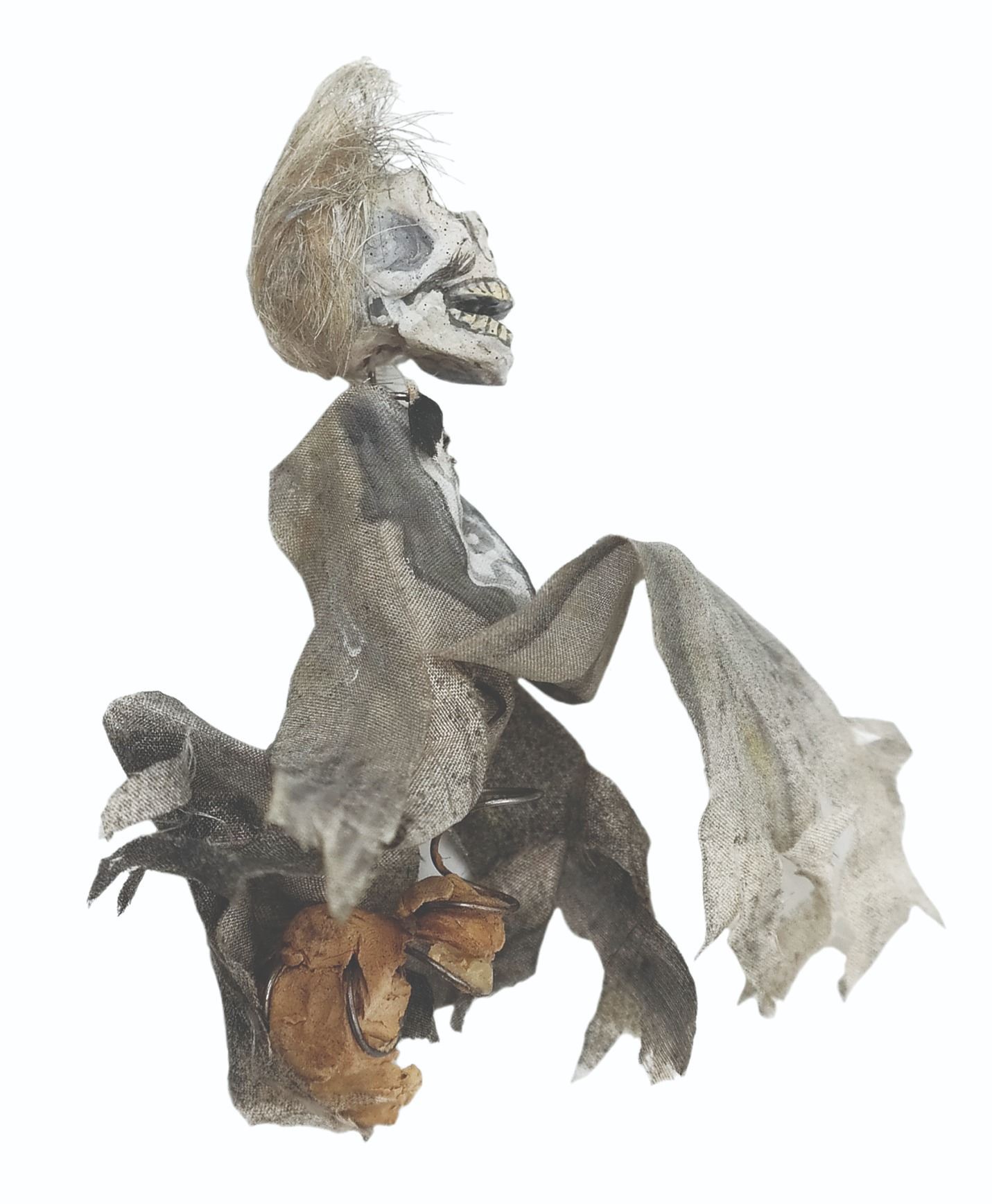 (Disneyland, 1969) An incredibly rare maquette of a pop-up ghost from the original model of Disneyland's Haunted Mansion. This rare artifact was rescued by an Imagineer working at WED when the model was dismantled. The haunting figure is constructed of plaster, fabric, and hair over a metal spring that was attached to the model. Measuring 3.5" tall, the maquette is in in good condition overall with wear from age and use. This is an incredible piece of Haunted Mansion history and still presents itself very well.