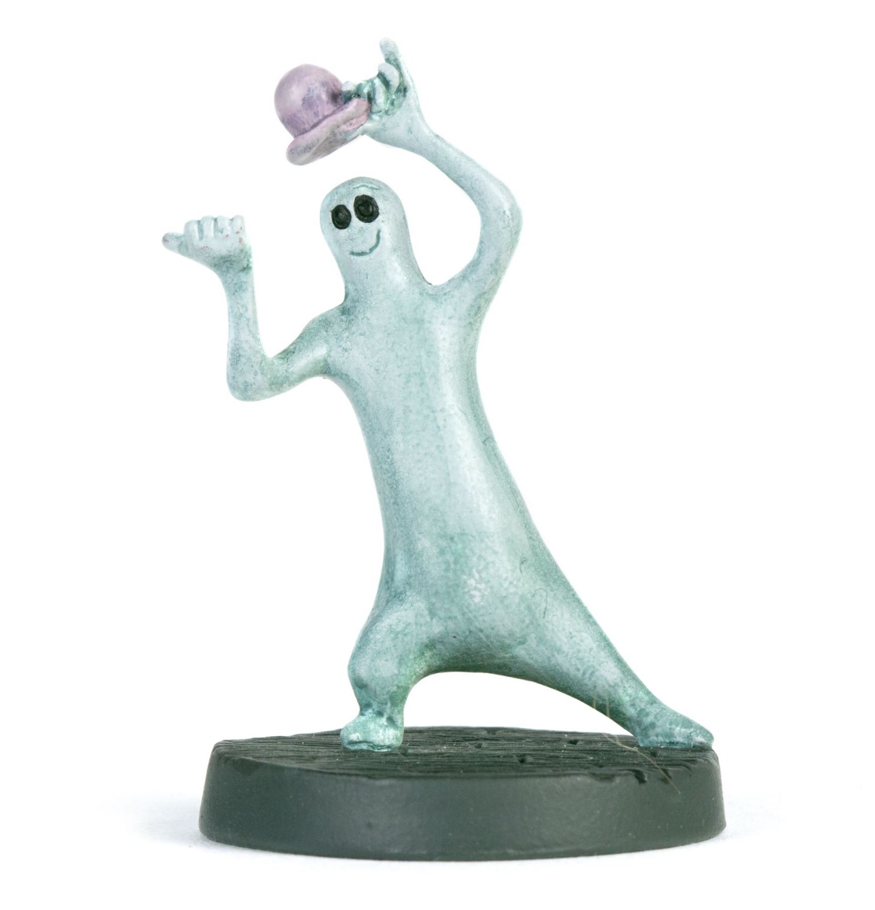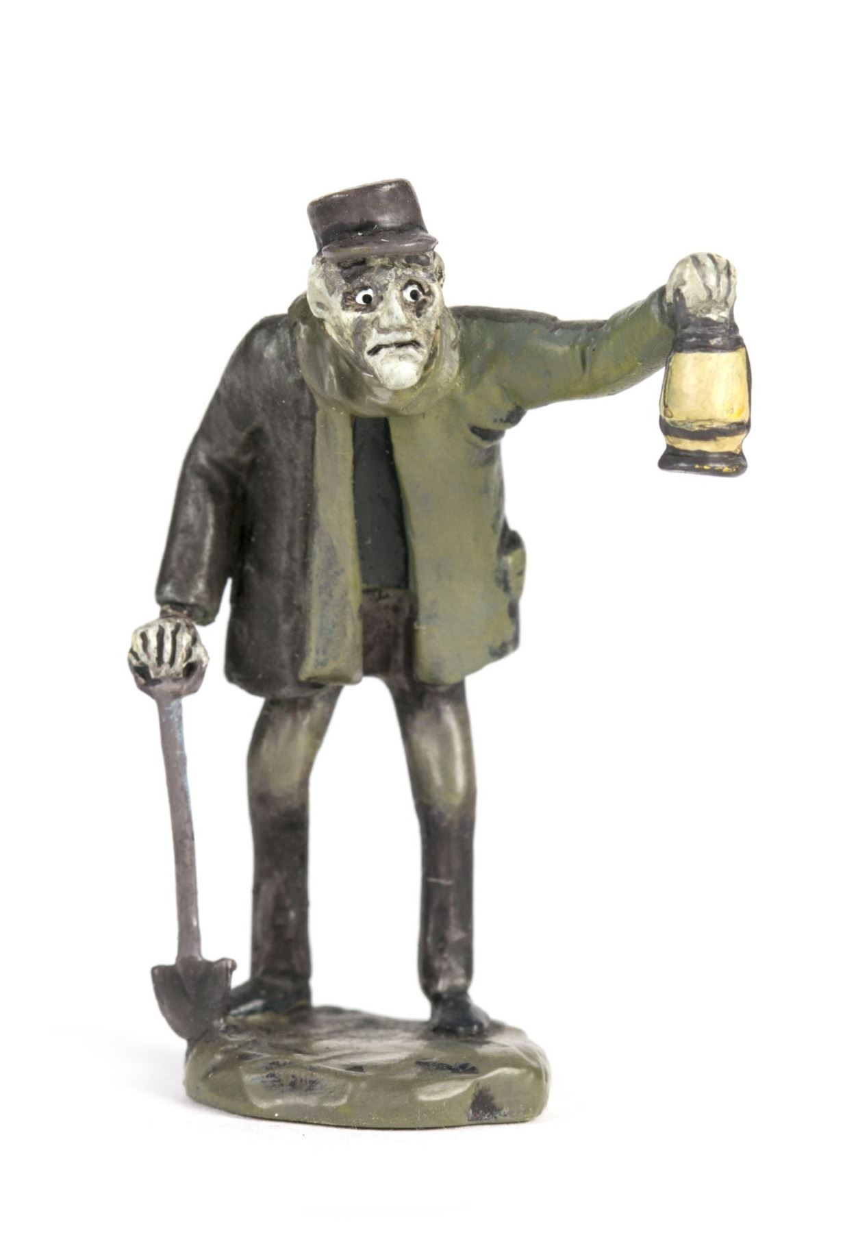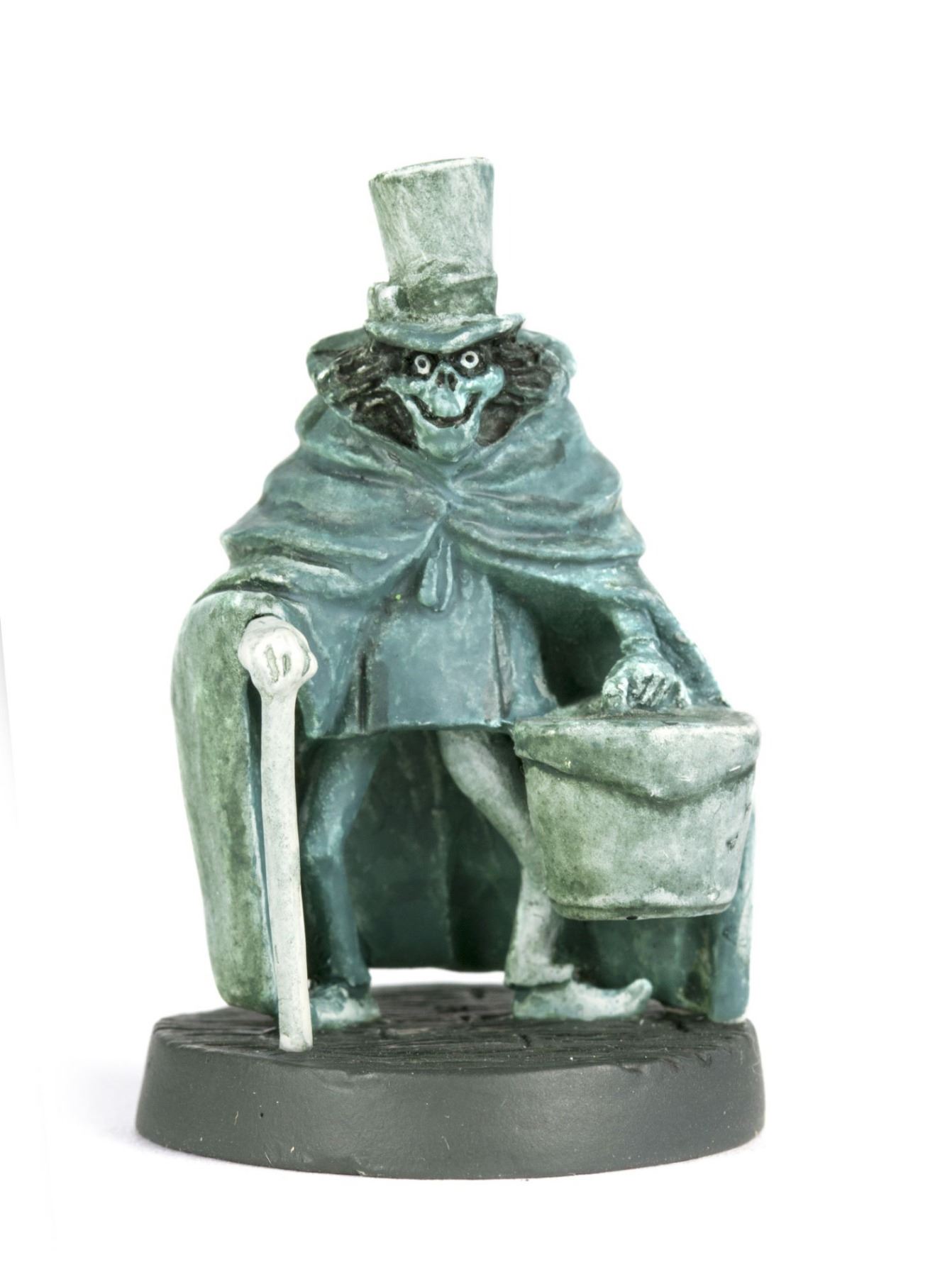 (Disneyland, 2005) This limited edition boxed set of "Haunted Mansion" themed pewter miniatures was created by Kevin Kidney and Jody Daily for Disneyland's 50th Anniversary. This set was limited to 1500 pieces and includes miniatures of: the three Hitchhiking Ghosts, the Gravekeeper, a Mummy, and the Hatbox Ghost. This boxed set measures 7"x10" and 3.5" tall, and is in very good condition with little wear to the box.