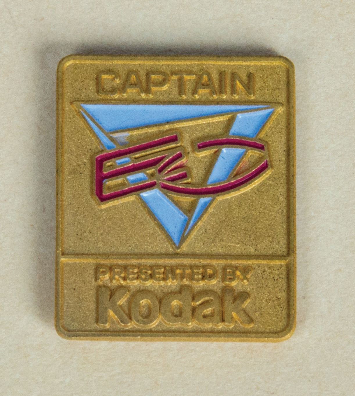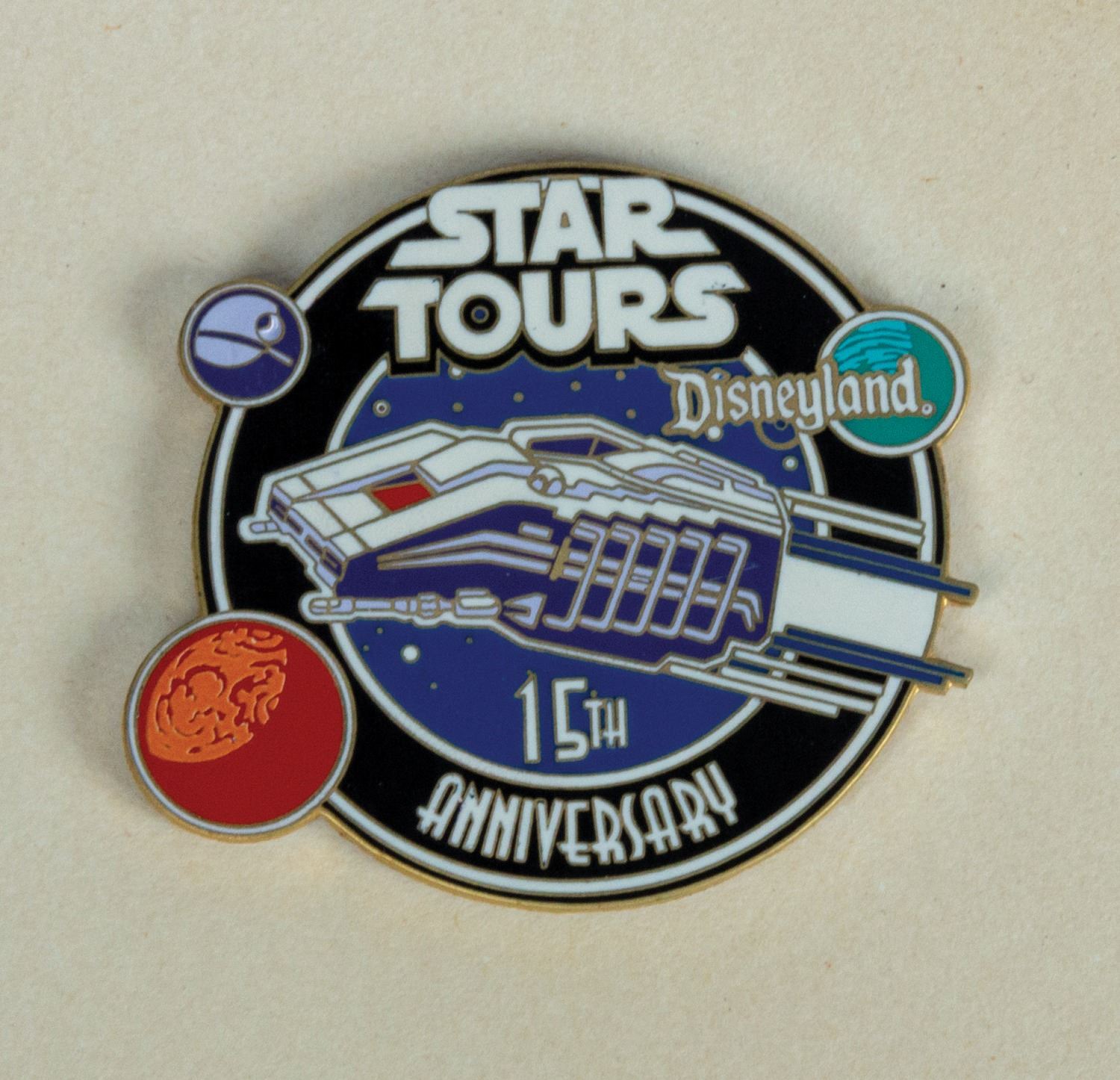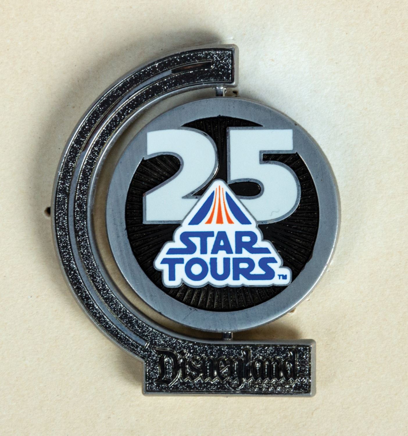 (Disneyland, 1991-2014) A print of John Hench’s iconic "Crossing Monorails" concept artwork framed with a collection of (19) pins for Tomorrowland attractions. The color print is signed and dated in black ink at lower left, “To Louie John Hench 11/7/91” and at lower right, “For Louie…Best Wishes Sam McKim 6-24-92.” A collection of (19) Tomorrowland-themed Disneyland pins are affixed to the mat around the print. The print measures 8.25”x13.25” visible through a 17”x20.75” wooden frame with gold-tone accents and is in very good condition. The pins are also in good condition with minimal wear.