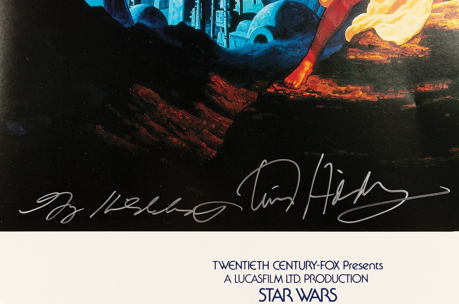 (Lucasfilm, 1993) A rare one sheet Style-A poster that was created to celebrate the 15th anniversary of Star Wars. The poster is signed by both Tim & Greg Hildebrandt, who created the artwork for this film poster. The poster was offered in a limited edition of 5000, of which this is 1322, and a certificate of authenticity is included. Measuring 41"x27", the poster is in very good condition overall with minor surface and edge wear.