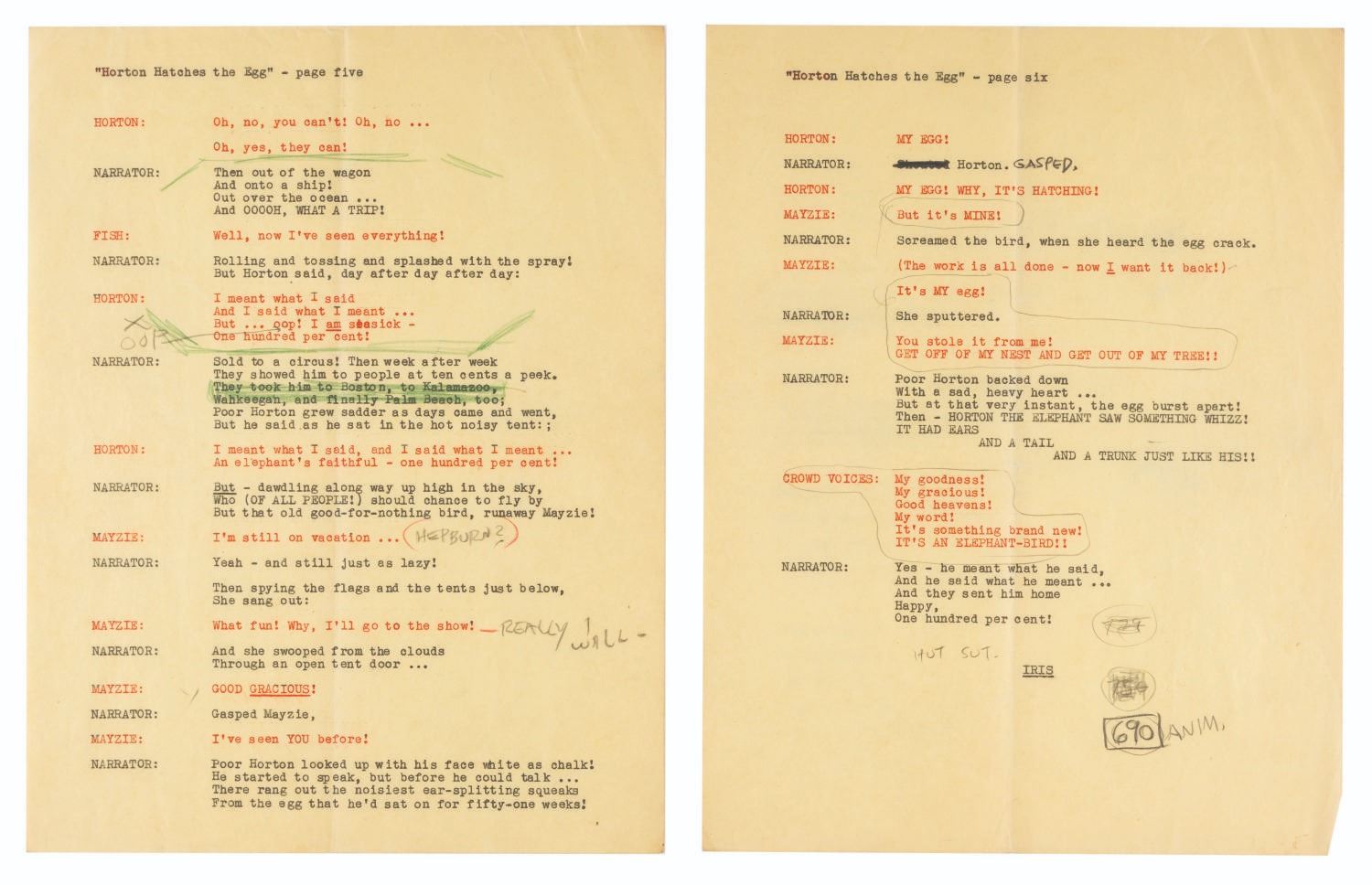 “Horton Hatches the Egg” Production Scripts.