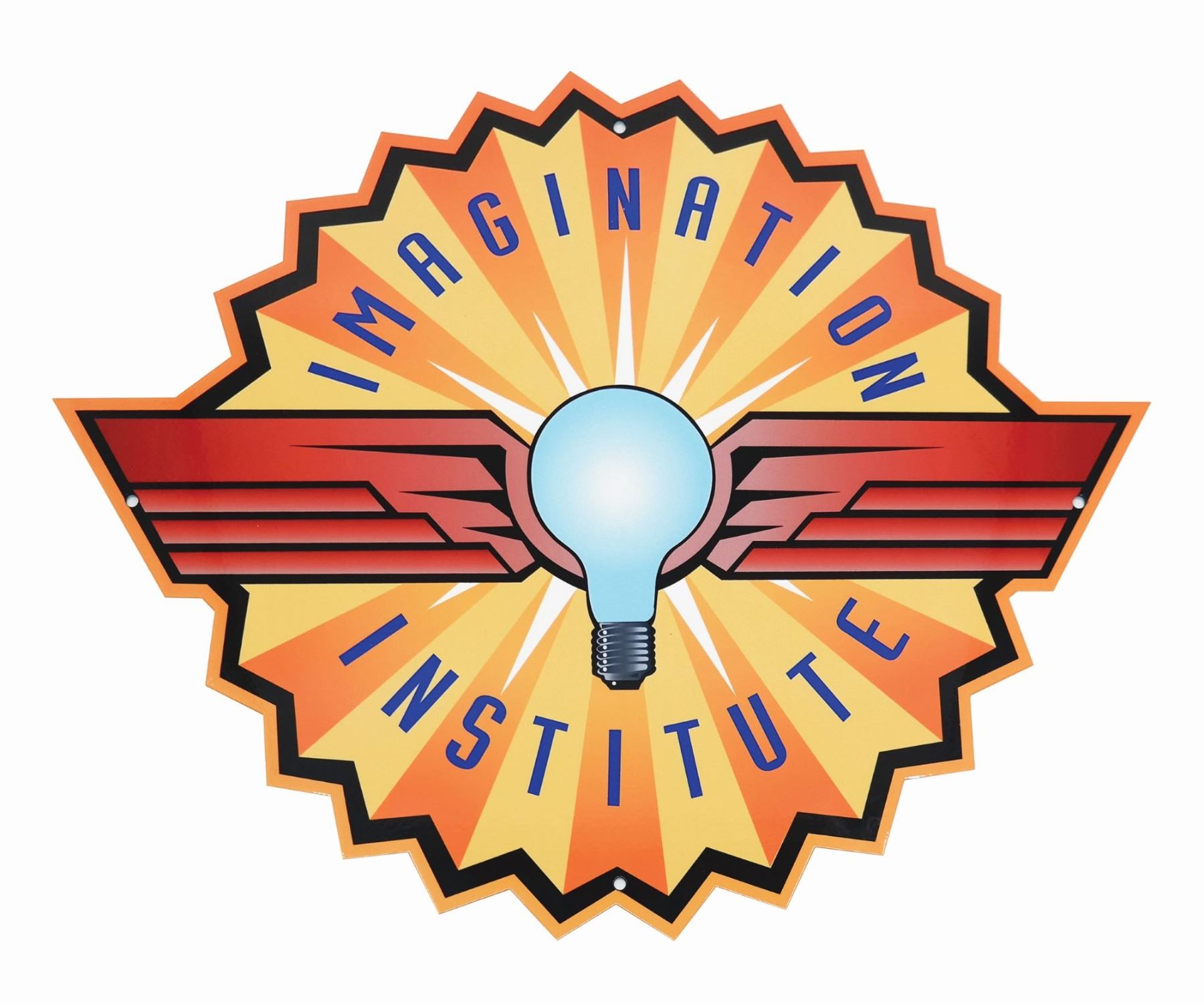 (Epcot, 2002) An original sign from Epcot's Journey into Imagination with Figment for the Imagination Institute. This sign celebrates the fictional Imagination Institute, which guests visit during the attraction. Measuring 14"x18", the sign is in very good condition with a small scratch at the top center. The condition suggests that this sign may have been a production made extra rather than having been installed within the park.