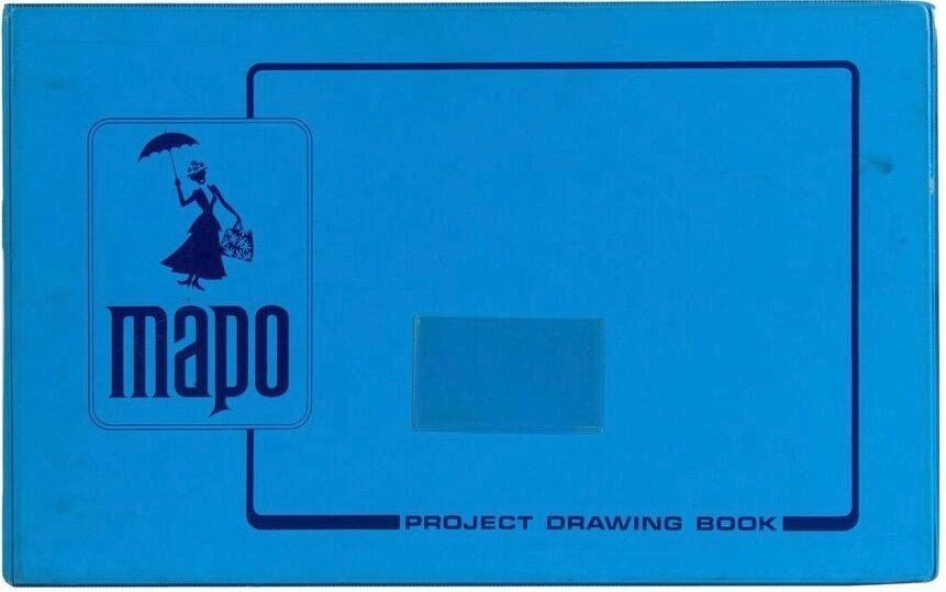 (Disneyland, 1968) An original "project drawing book" 3-ring binder proudly featuring the Imagineering "MAPO" name with imagery of Mary Poppins on the front. This large blue binder measures 12"x19" and 2" thick and is in good condition with some wear throughout from use including some wear to one of the rings.