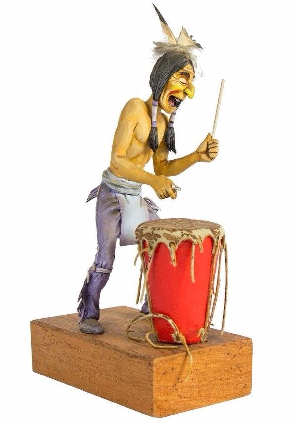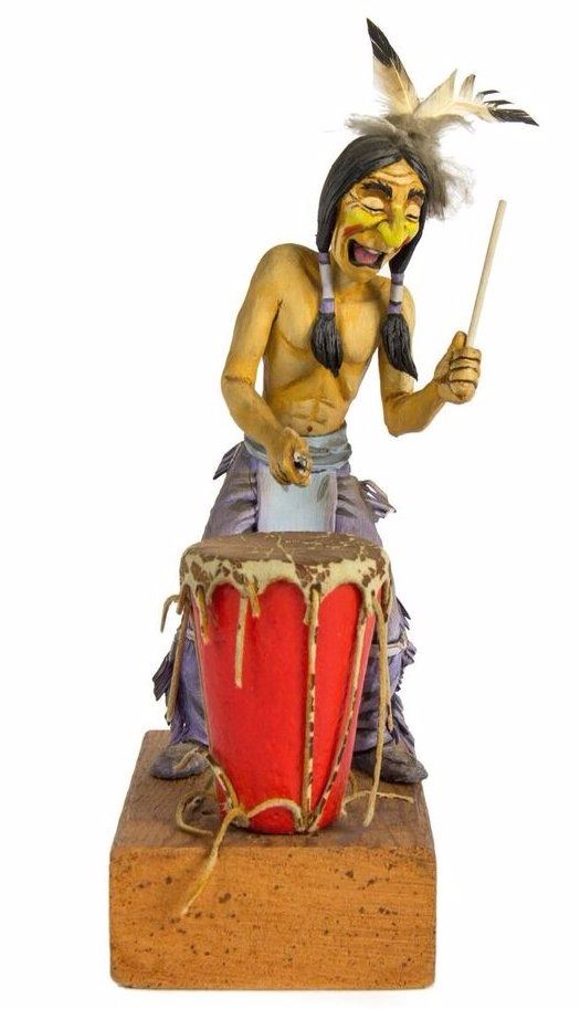(Disney, c.1960s-70s) An original maquette created by Imagineer Ken O'Brien for the legendary "Western River Expedition" attraction. This maquette was created during the scale-model phase of designing the attraction, and beautifully captures the energy of Marc Davis' original concept designs. This maquette was created during the scale-model phase of designing the attraction, and beautifully captures the energy of Marc Davis' original concept designs. This maquette features an Indian playing a drum. This maquette is composed of painted resin over a wire armature and is adhered to a wooden base. This item measures approximately 3.5"x5.5" and 10" tall. This item has been lightly restored and is in fair to good condition, with some breaks in the lower-body and minor wear throughout. A drumstick is missing and the drum itself is not attached to the base.