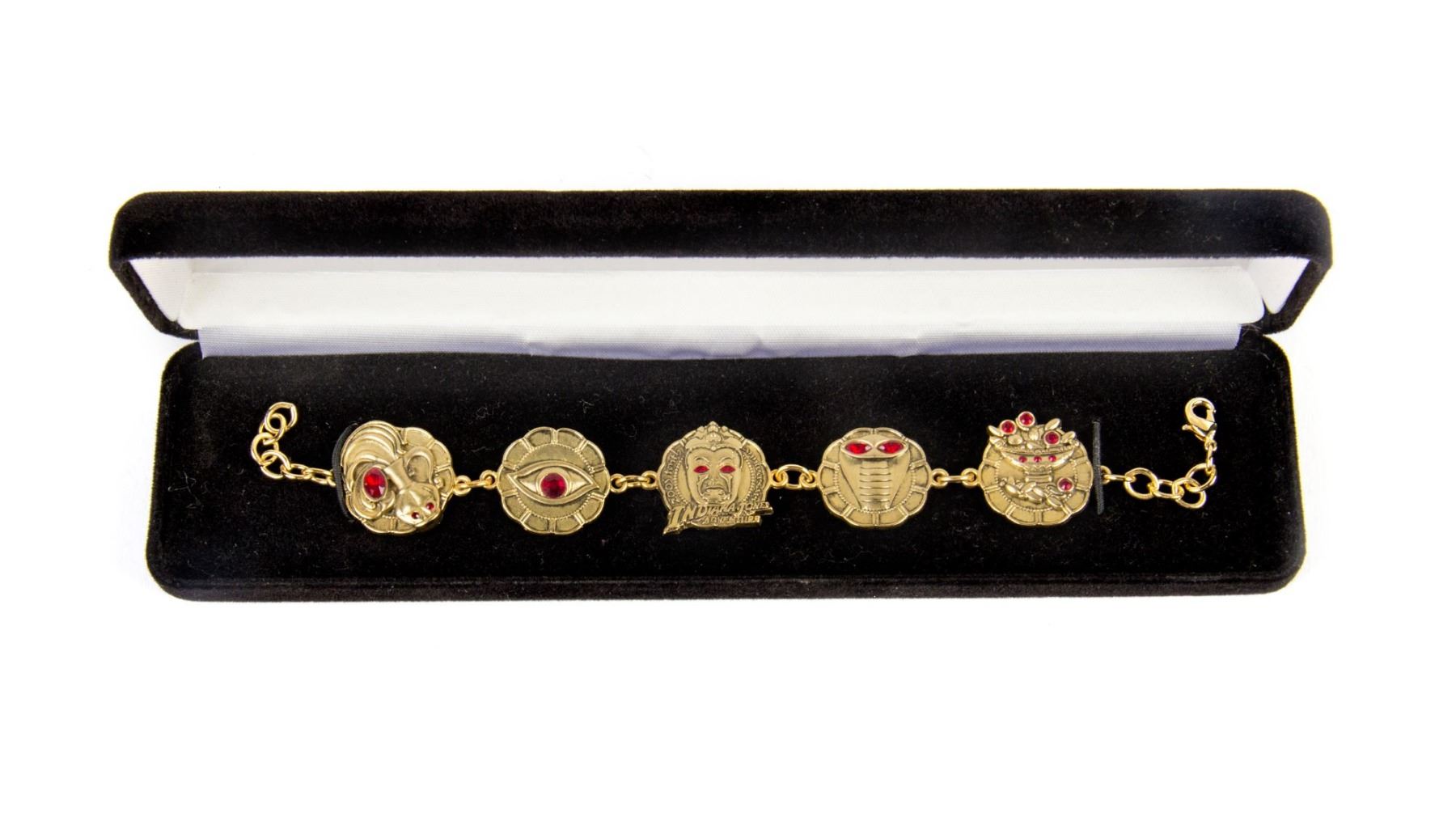 (Disneyland, 2005) A limited edition charm bracelet featuring Mara Temple imagery from Disneyland's "Indiana Jones Adventure". The bracelet was created in a limited edition of 150 to celebrate the 10th Anniversary of the attraction. Measuring 8.5" long, the bracelet is in very fine condition in its original velvet case.