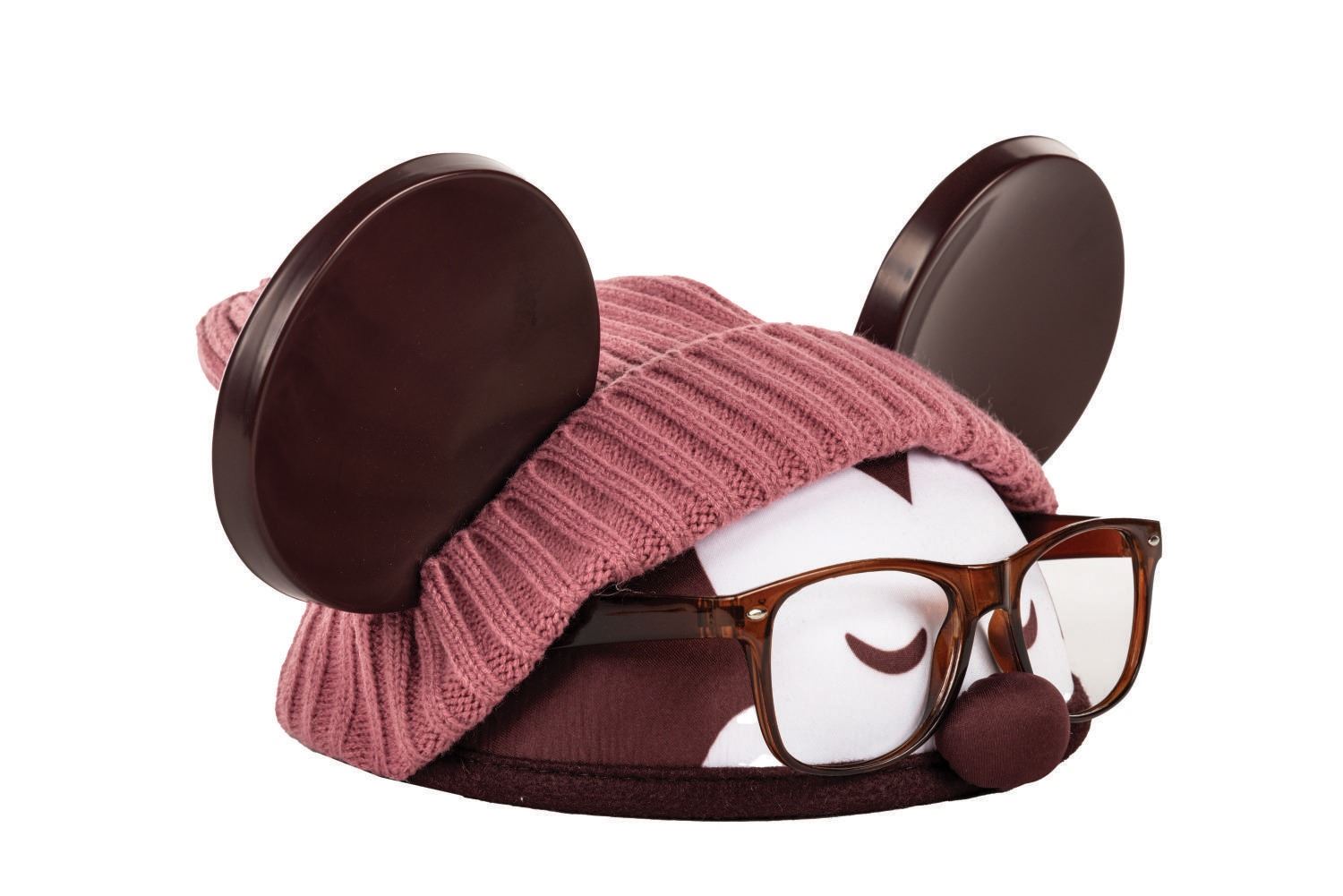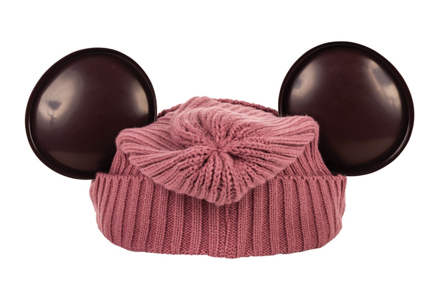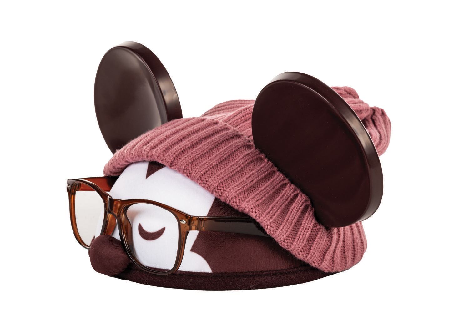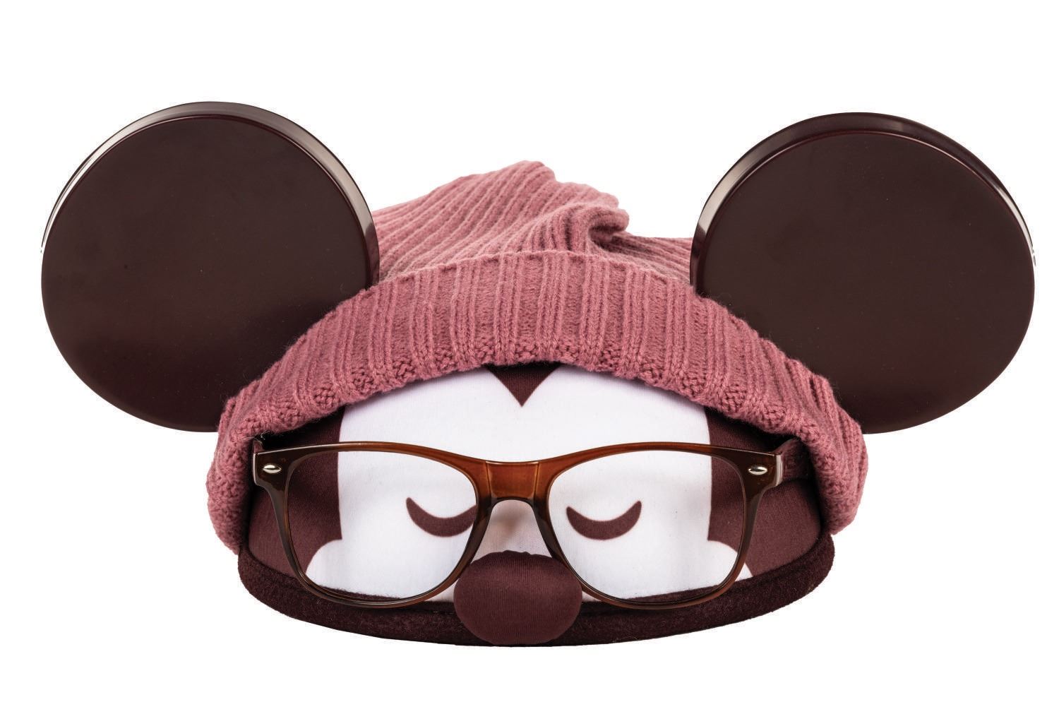 (Disney Parks, 2020) A whimsical Limited-Edition Mickey Ears set designed by artist Jerrod Maruyama. Based on his 2013 piece "Happiest Hipster on Earth," the ears feature Mickey with eyes coolly closed, wearing an oversized knit beanie and tortoiseshell eyeglass frames. Measuring 5.75" tall and 12" at its widest, the piece is in very fine condition.