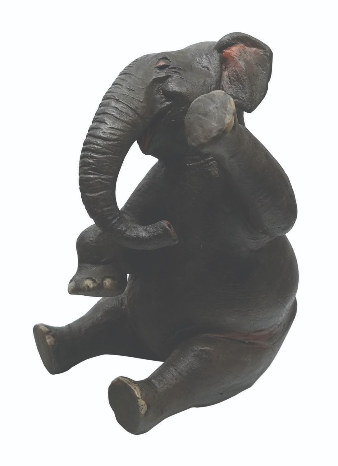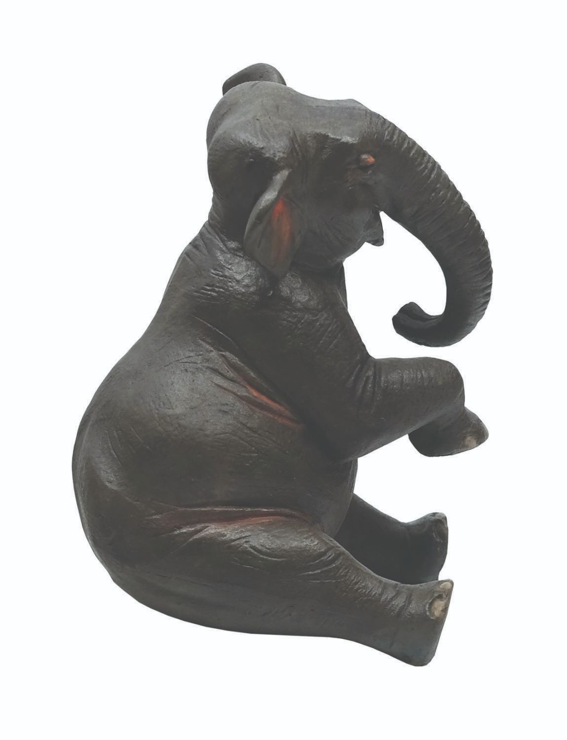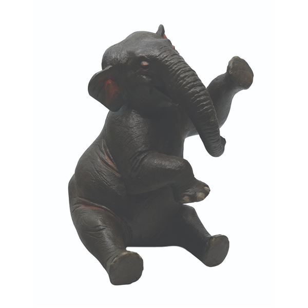 (Walt Disney World, c.1971) An original elephant maquette created during the development of the Jungle Cruise attraction at Walt Disney World. The maquette is identical to Blane Gibson's sculptures from Disneyland, as the original models were reused rather than sculpting anew. Cast in a heavy plaster, these models were also created to test water lines and depths for the attraction as necessary, due to the difference in Florida's water levels compared to California. This maquette comes from the collection of Disney Legend Ralph Kent, who was instrumental in the creation and opening of Walt Disney World. Measuring approximately 7.5" tall, the maquette is in very good condition, with paint and plaster restoration performed by Disney historians and artists Kevin Kidney and Jody Daily.