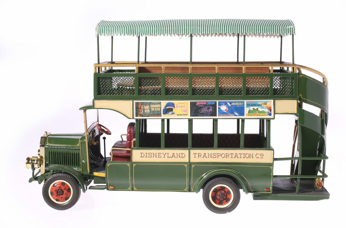 (Disneyland, 2005) Beautiful scale replica of the Main Street Omnibus, created for Disneyland's 50th Anniversary celebration. Designed by Imagineers Kevin Kidney and Jody Daily, the bus was produced in an edition of only 500 pieces. Measures 15.75"x8.75" and 11.75" tall. In its original box and packaging. In very fine condition.