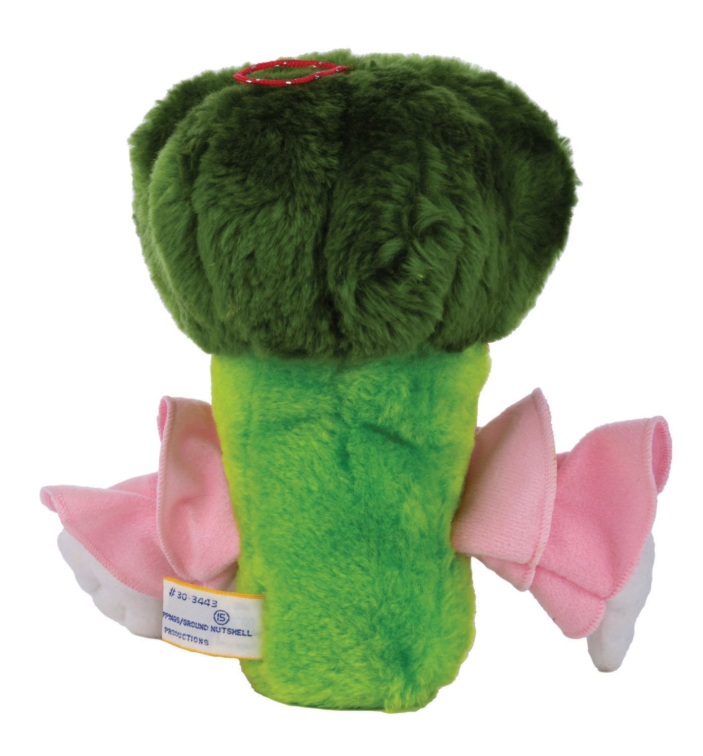 (Epcot, 1982) A vintage Mr. Broccoli plush toy from Epcot Center's Kitchen Kabaret attraction. It retains the original sales tag, with the price tag removed from the reverse. In fine condition with minimal wear.