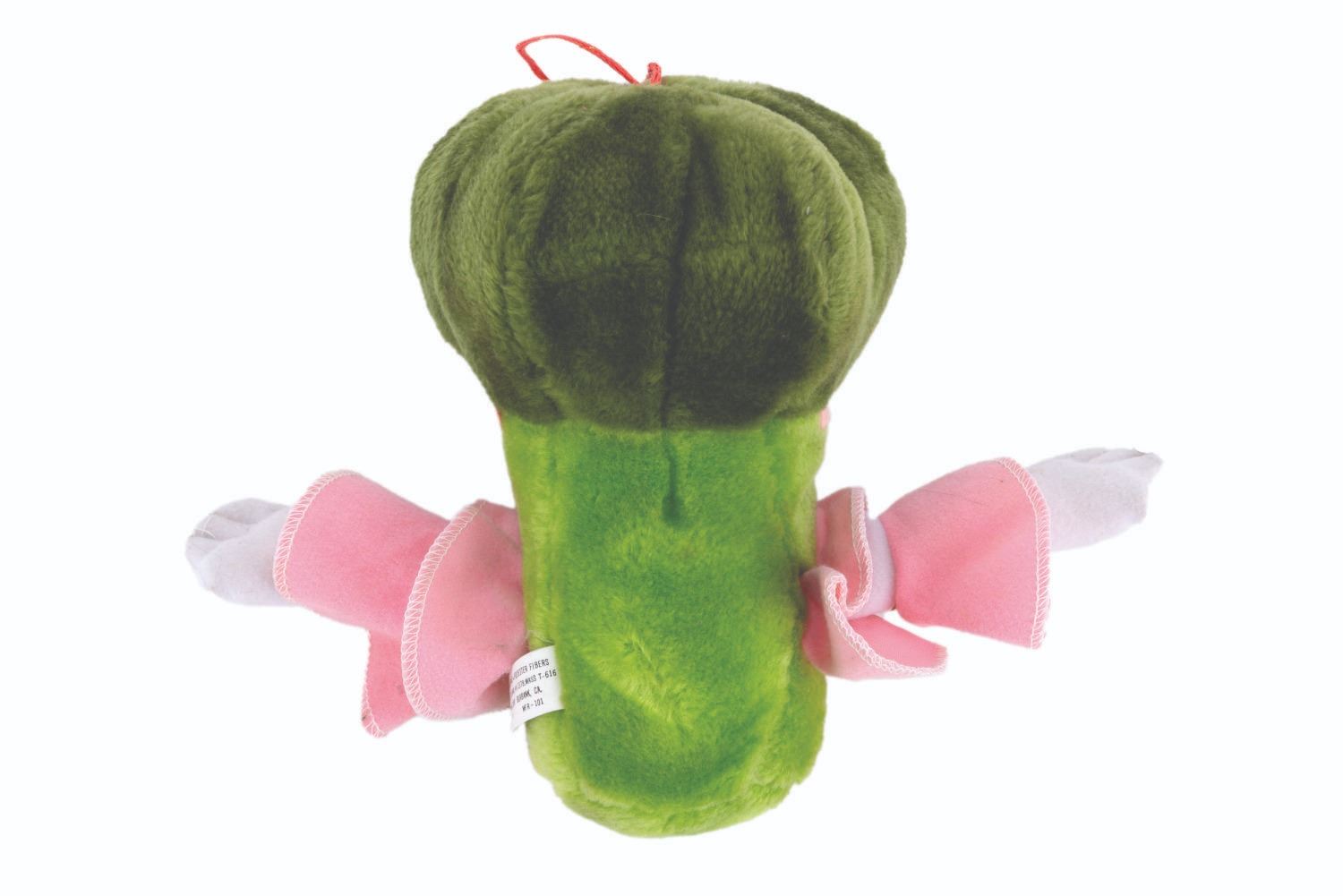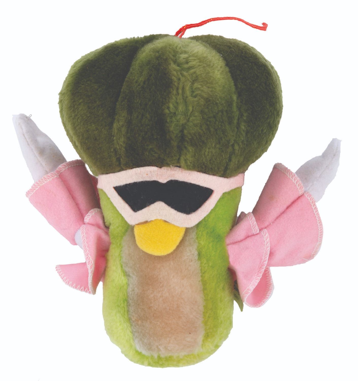 (EPCOT, 1981) A rare plush toy of Mr. Broccoli from EPCOT's Kitchen Kabaret. Mr. Broccoli delivered the memorable "Cha-cha-cha!" during the Colander Combo and Fiesta Fruit sequence of the attraction. Measuring 7" tall, this plush toy is in good condition with light wear from display.