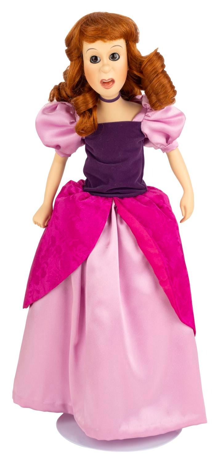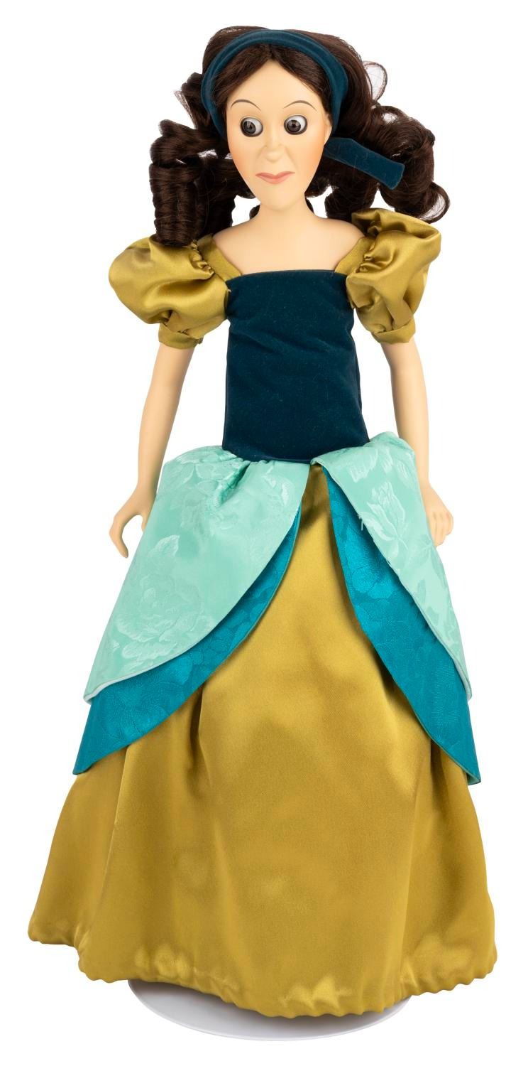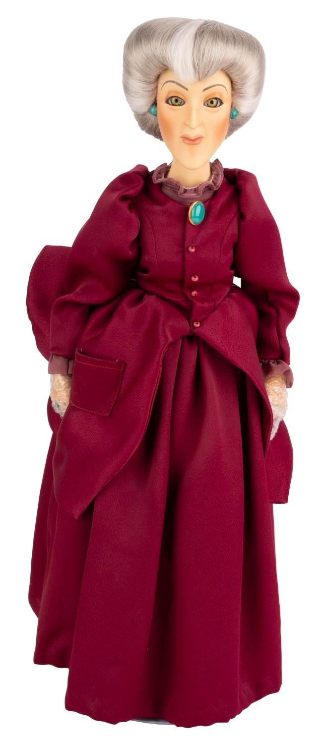 (Disney Gallery Collection, 1990s) A collection of three limited edition Lady Tremain, Anastasia, and Drizella porcelain dolls designed by Lynn Crosby. Each hand-painted fine bisque porcelain doll features meticulously crafted fabric clothing and accessories. Measuring approximately 19" tall each, the dolls are in very good condition with a faint mark on the top of Anastasia's left foot and light scratching to her base.