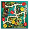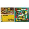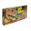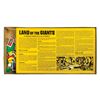(Ideal, 1968) A vintage Land of the Giants board game manufactured by Ideal. Based on the ABC sci-fi TV series, the set includes a game board, a die, 2 giant playing pieces with plastic bases, 4 stranded traveler playing pieces with plastic bases, 4 start weapon pieces, 3 land weapon pieces, and 15 equipment pieces (1 "Electronics" piece is missing). Measuring 10"x19.75" and 2" deep, the original box is in good condition. The lid exhibits some edge wear with tape repair to splits in both bottom corners and retains a Bargain Town price tag on the upper edge. The game components are in fine condition.