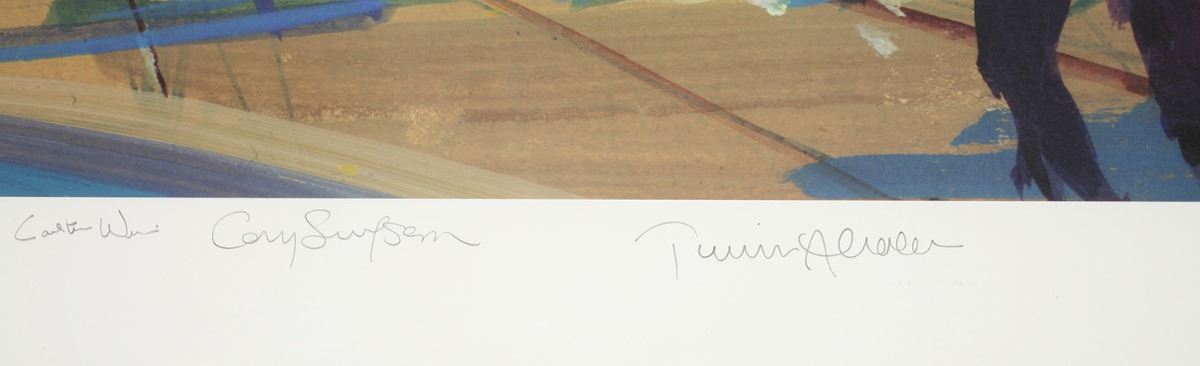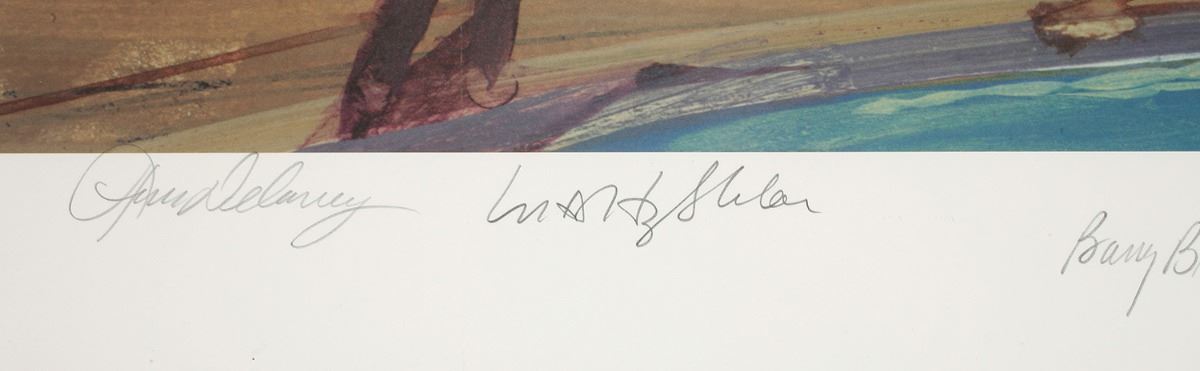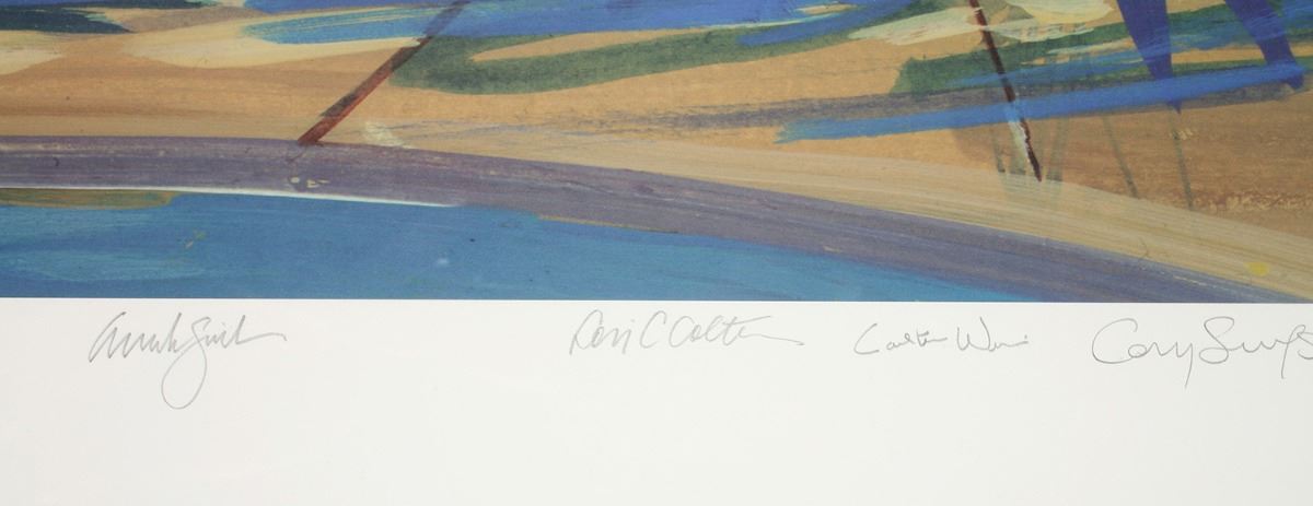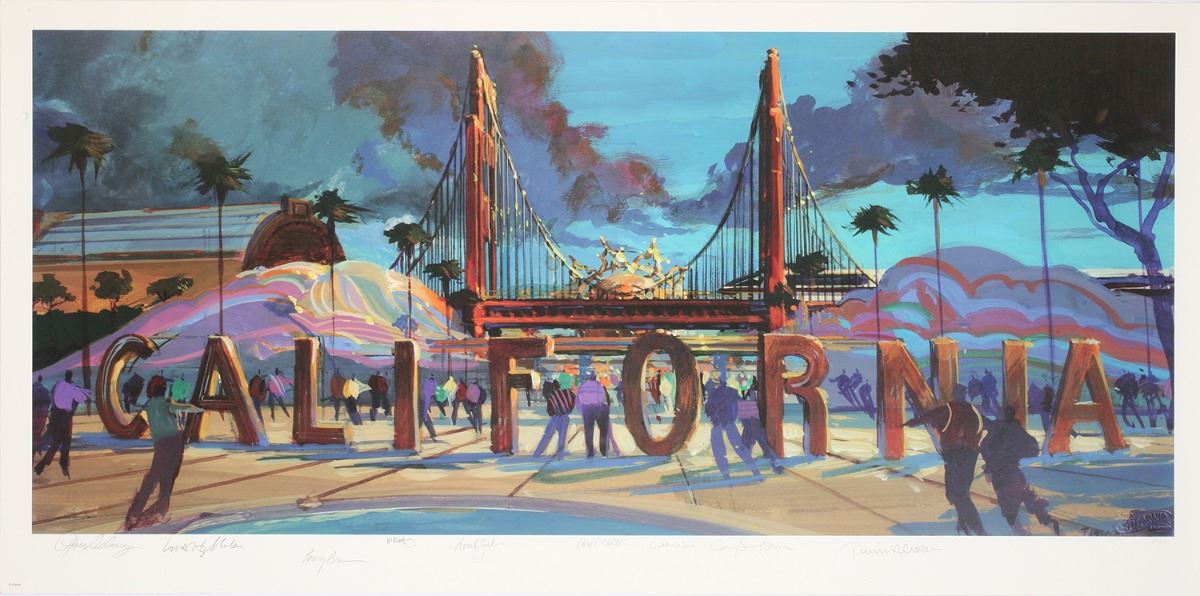 (California Adventure, 2000s) Large print by Tim Delaney, signed by the artist and an additional eight others. Numbered 83/250. Measures 20"x40". In fine condition with minimal wear.