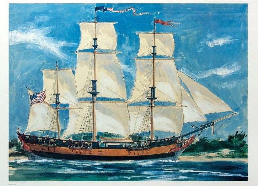 (Disneyland, 1998) A large lithograph featuring Imagineer Sam McKim's concept artwork of the "Sailing Ship Columbia", created to mark the 40th Anniversary of the attraction at Disneyland. This item is measures 26"x40" and is in very good condition with some edge-wear including a few small spots of discoloration.