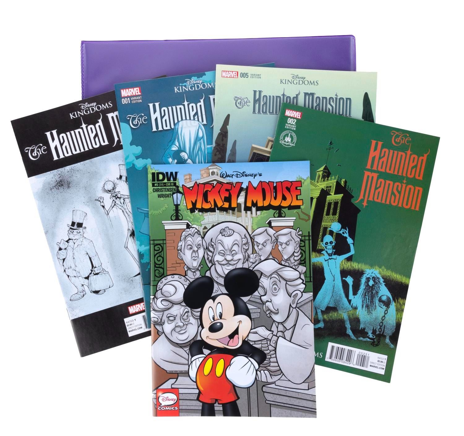 (MARVEL/IDW, 2015-16) A Haunted Mansion (18) Comic Book Collection. This lot includes comic books with variant cover illustrations by MARVEL and IDW. Among this lot are Marvel Disney Kingdoms The Haunted Mansion (#1-5) and IDW Walt Disney’s Mickey Mouse (#5). Each comic is in fine condition in their bags with boards.