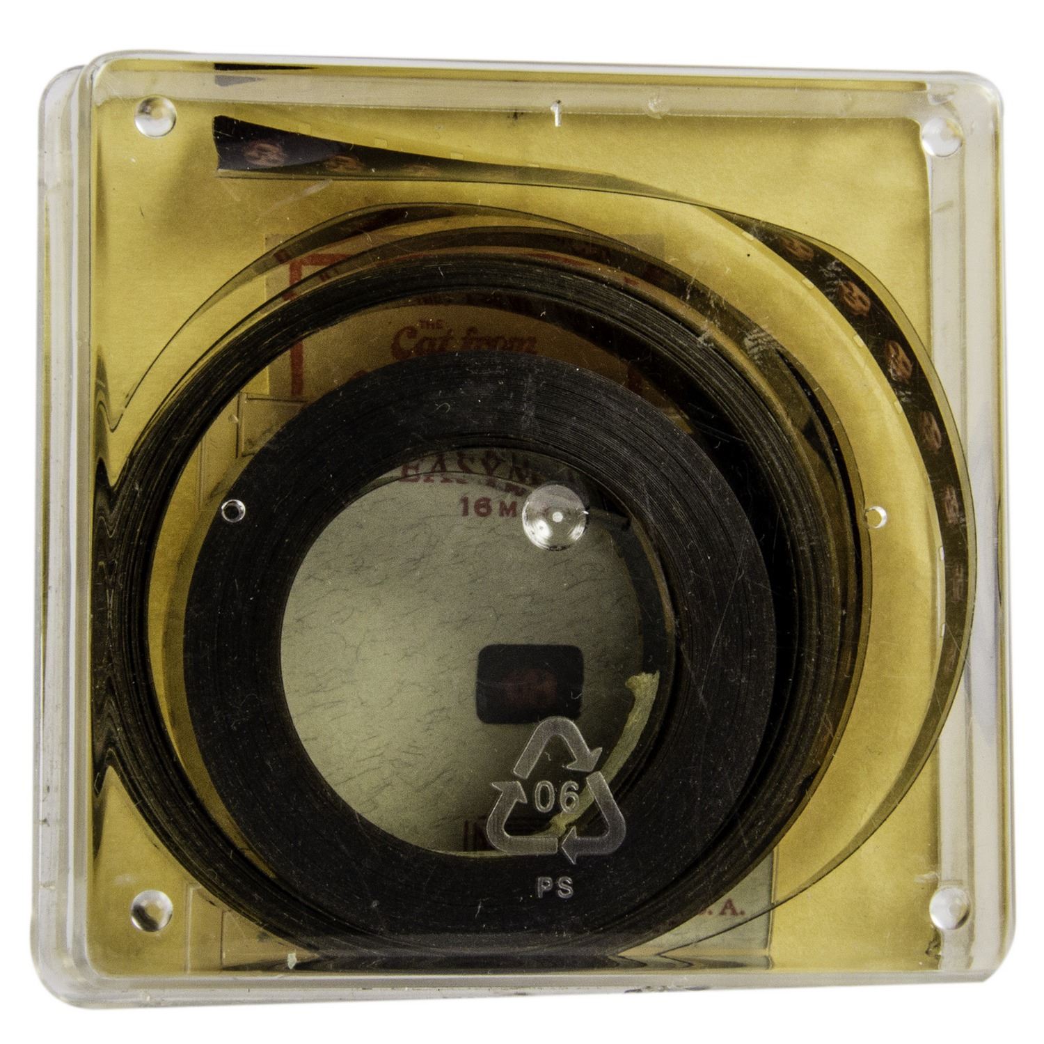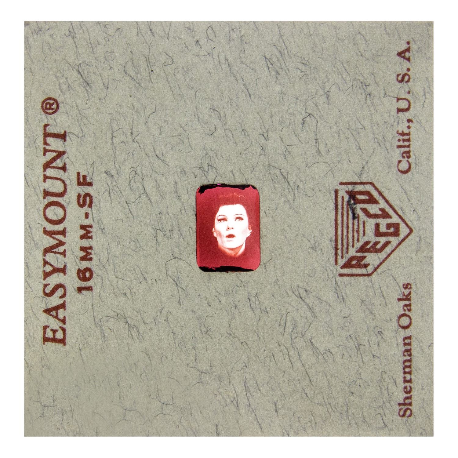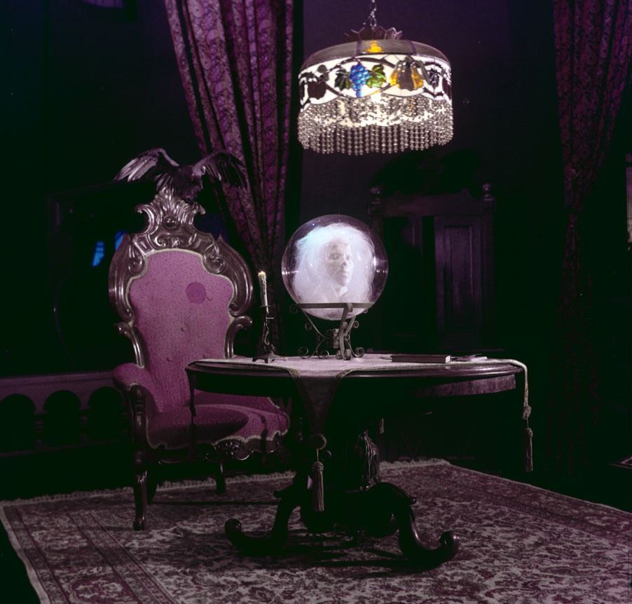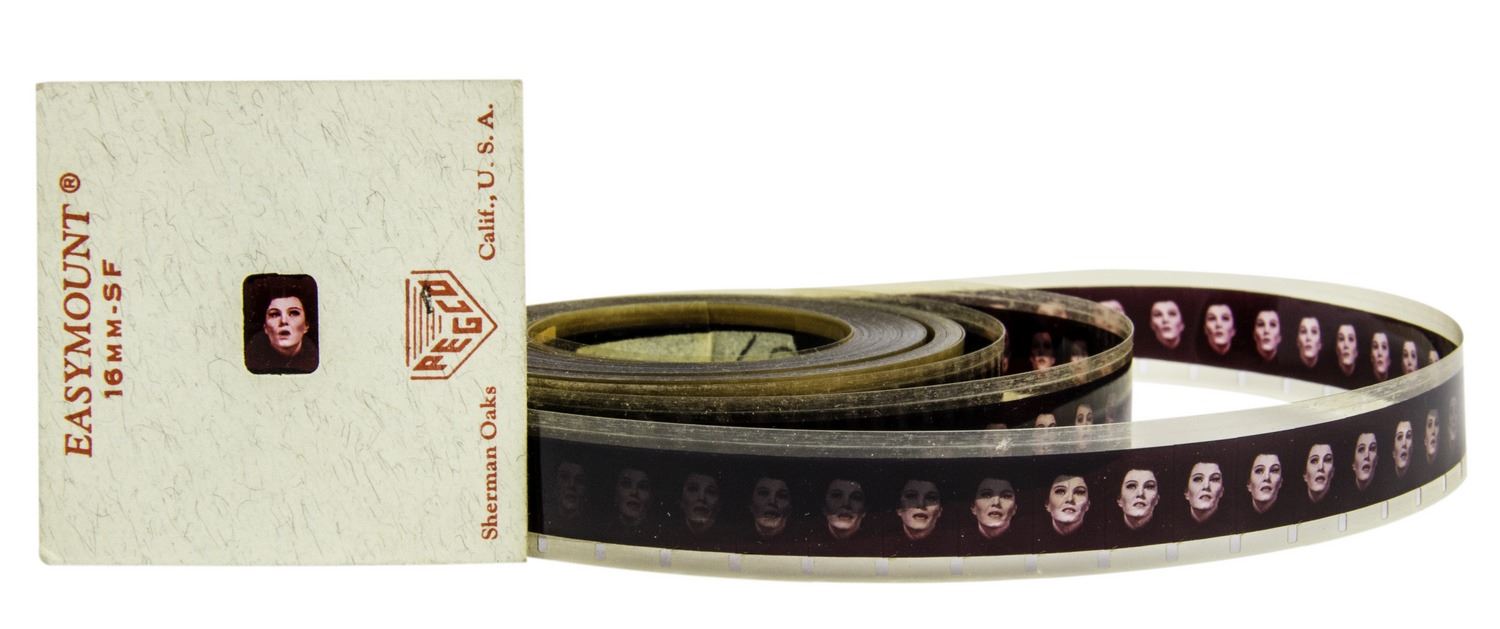 (Disneyland, c.1970) An extremely rare 16mm film used for Madam Leota's crystal ball at Disneyland's "Haunted Mansion" attraction. The iconic crystal ball appears to contain the head of the mysterious spirit medium Madame Leota, while the effect is achieved through a 16mm film projection into the crystal ball. The film features the facial movements of WED Imagineering employee Leota Toombs, while the accompanying audio used in the attraction was performed by Eleanor Audley whose previous voice work could be heard in "Sleeping Beauty" as Maleficent and in "Cinderella" as Lady Tremaine, among others. Originally, the looped film would run through a projector onto a stationary bust within the crystal ball, but as technology improved, digital projection allowed the crystal ball to move about the air as it does today. The roll of film measures 2.5" in diameter with a 1.5" in diameter space in the center. There is a small piece of tape along the center with a hand-written "37" marking. The film has not been tested for playability, but appears to be in very good functioning condition.
