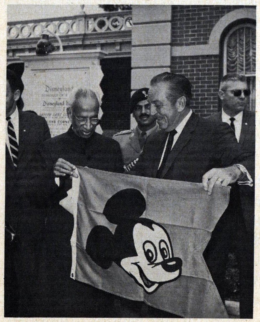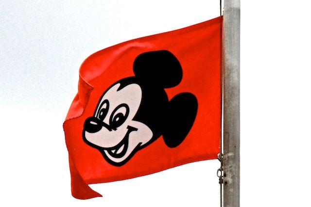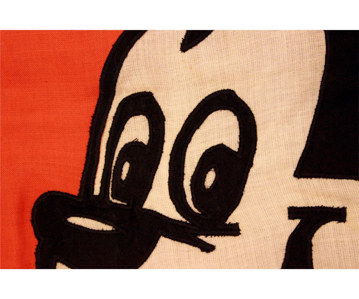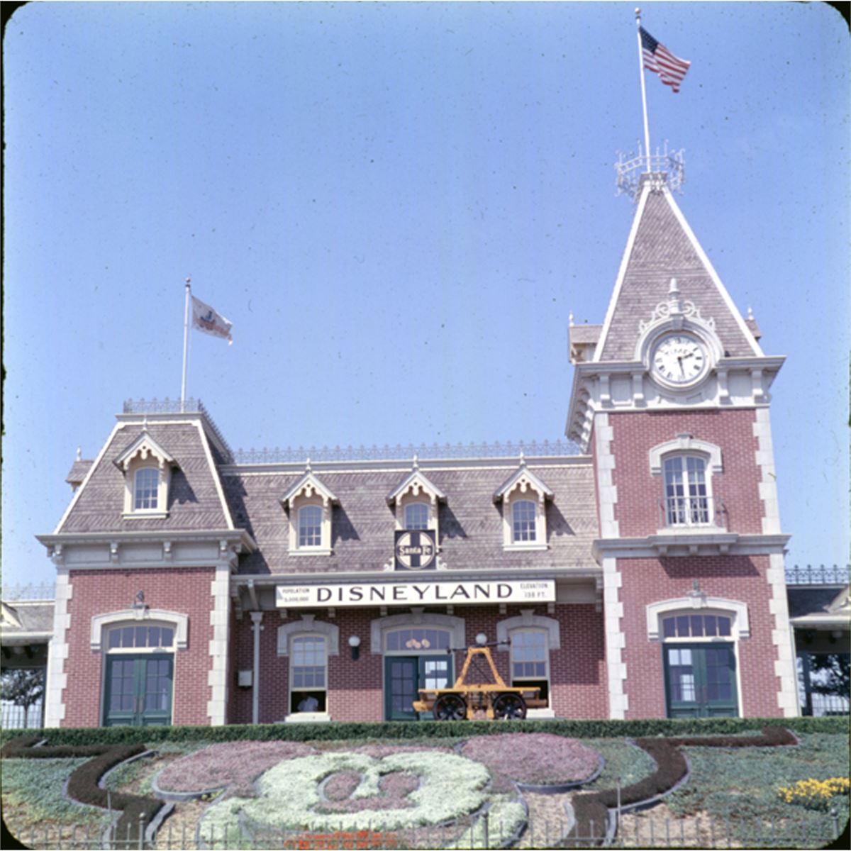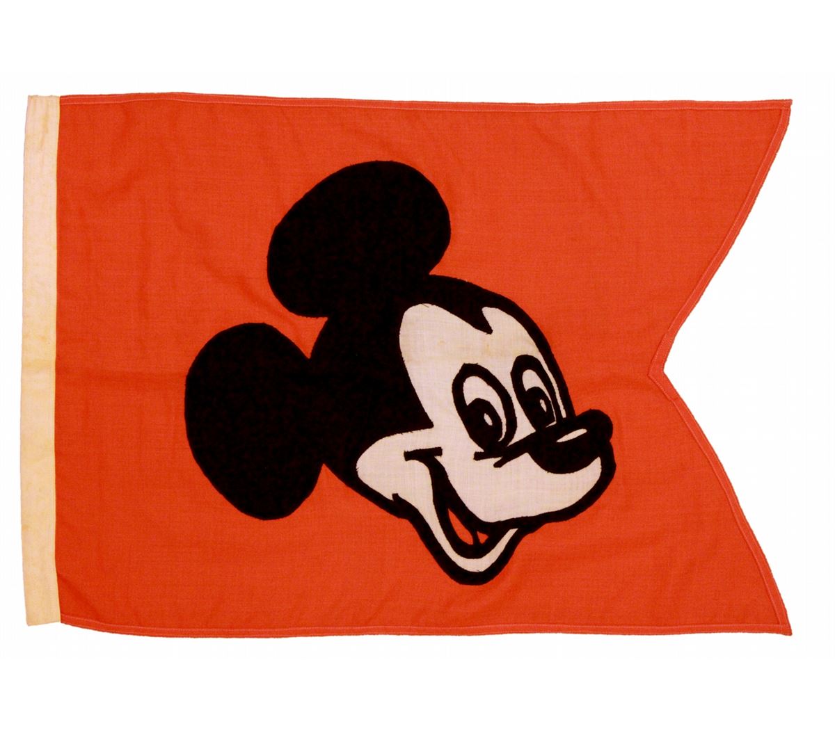 (Disneyland, 1956) Extremely rare park-used Main Street Station entrance flag. Measuring 23.5 x 35 in., this flag was flown over the Main Street Station opposite the American Flag. In good condition with expected wear.