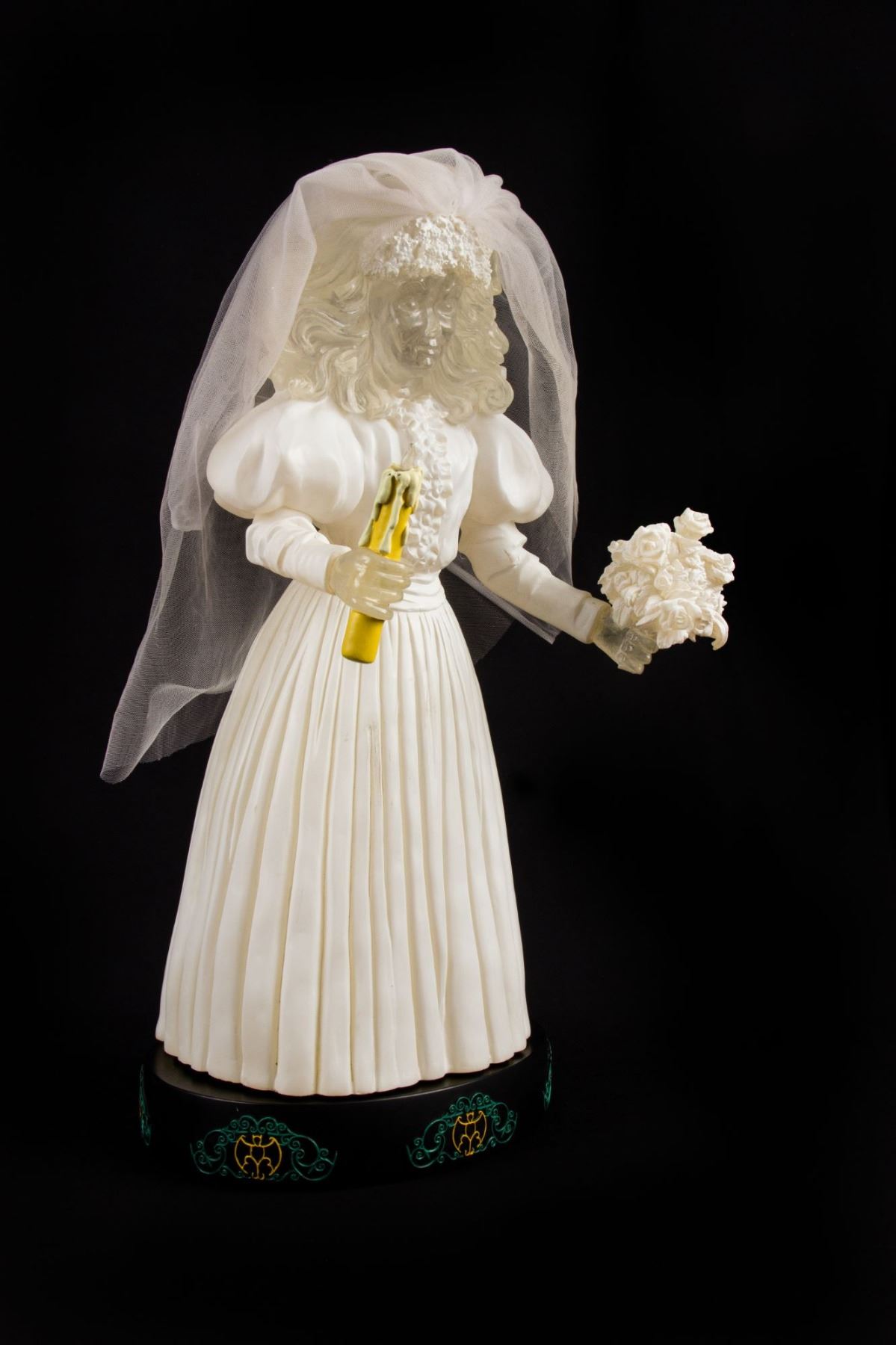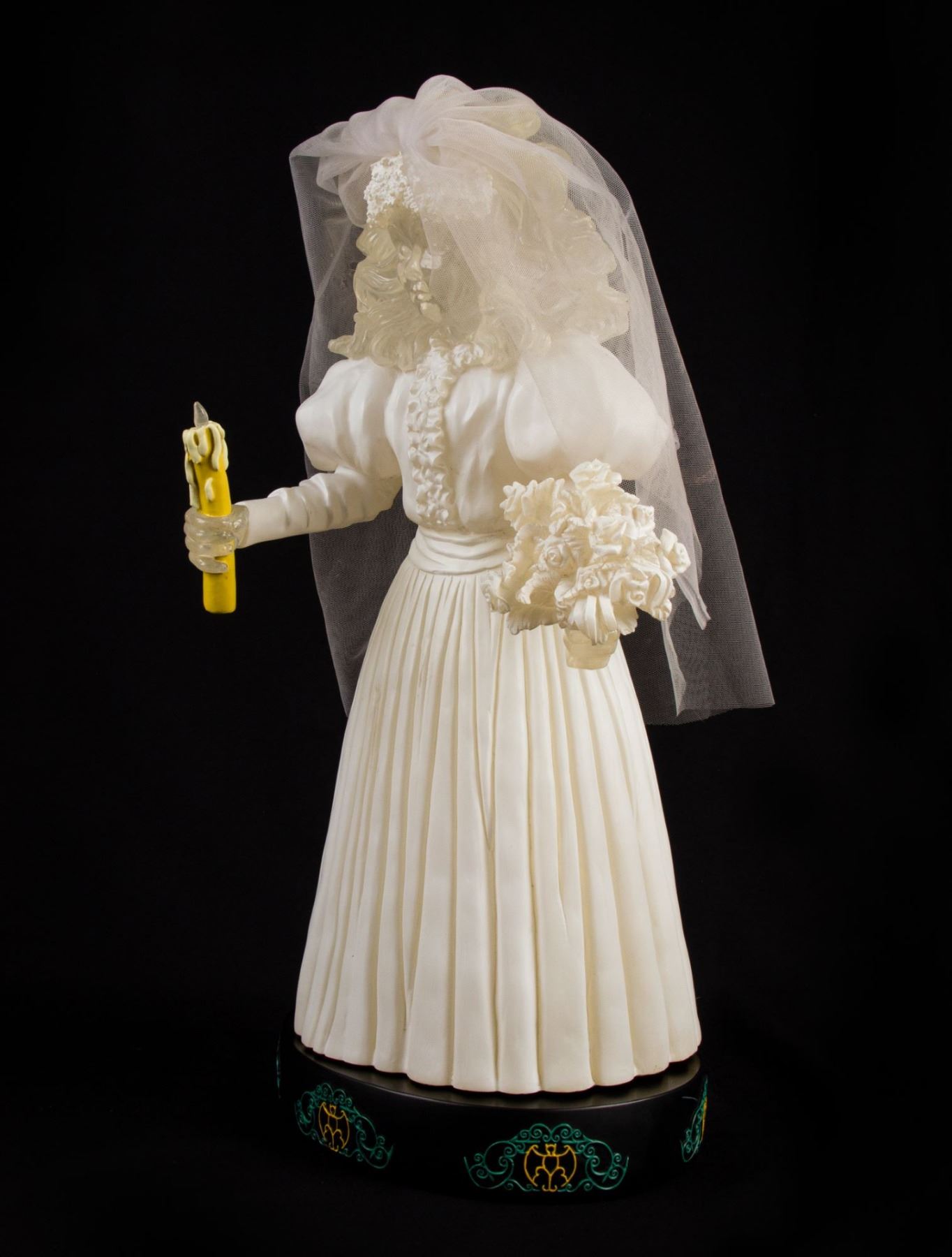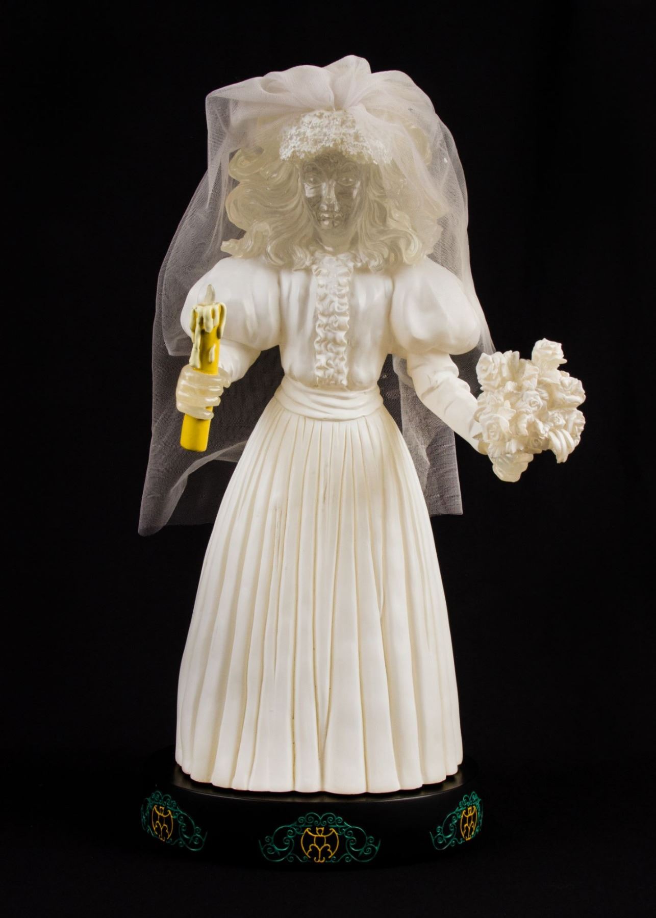 (Disneyland, 2005) A very rare light-up figure from a "Haunted Mansion" Happy Haunts event. This incredibly rare figure depicts the iconic Bride and features lighted portions which are motion activated. The Bride's heart glows and beats with a chilling thud when she is touched. This item measures an astounding 22" tall and is in very good condition with minor wear including a few scuffs along the dress.
