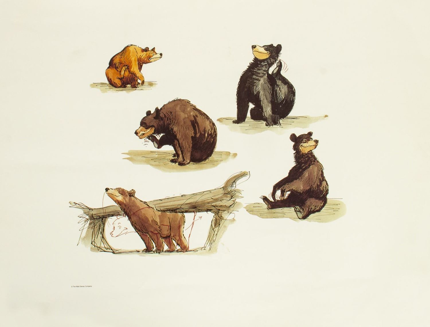 (Disneyland, c.1990s) A large printing test featuring concept designs by Imagineer Marc Davis that were originally created for Disneyland's Nature's Wonderland. This printing test is believed to have been created for a Disney Gallery event, and measures 20"x26". The condition is good with some creasing to the paper.