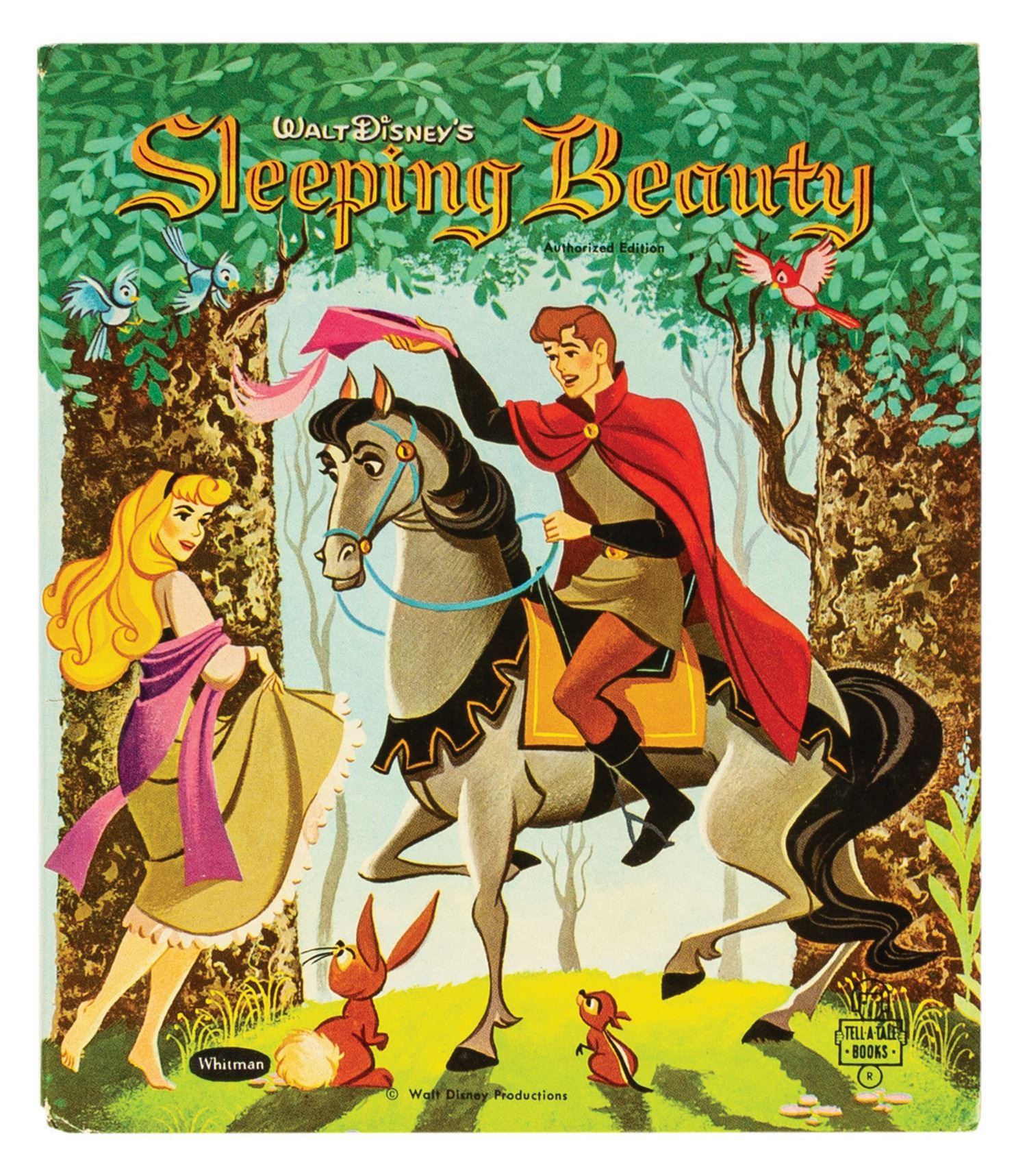 (Disney, 1959) A Sleeping Beauty "Tell-a-Tale" picture book by Whitman Publishing that is signed by Disney Legend Marc Davis. Davis designed the character Maleficent after taking inspiration from an art book of the Middle Ages, and the character has since been regarded as one of the greatest Disney villains of all time. Davis sketched Maleficent on the interior title page in ink above his signature with a note "for Alan." Measuring 6.75"x5.75", the 27-page book is in fine condition with minor edge wear to the cover.