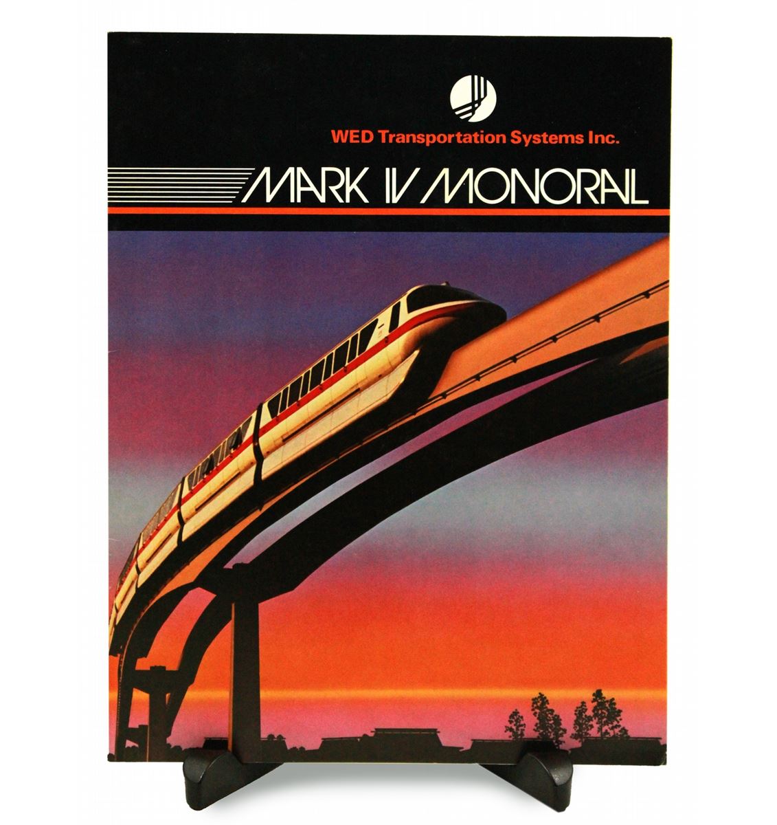 (WED, 1975) Informational sales booklet created by WED for potential sales of the Mark IV Monorail system for commercial use outside of the Disney company. A major feature of Disney’s plan with EPCOT was to initiate research & development of various transport, communication and city engineering systems to benefit his prototype community and in turn provide a revenue stream with the licensing of said systems to industry. Community Transportation Services (CTS) was part of the semi-realized plan. The cover features a nice color photo of the Mark IV monorail. Measuring 11 x 8.5 in. and in very good condition.