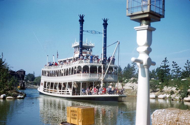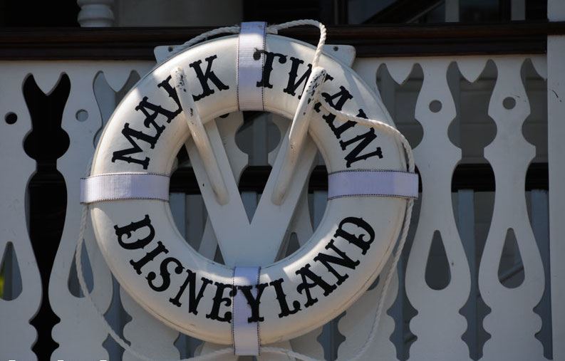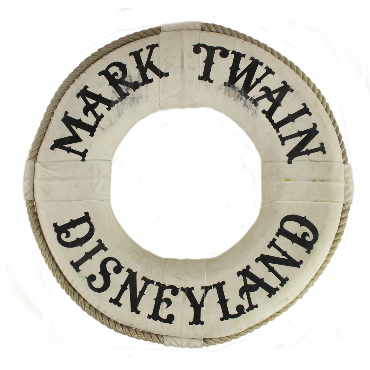 (Disneyland, 1960s) Rare life-preserver prop that hung on the Mark Twain Riverboat in the 1960s. The 26 x 26 x 3 in. canvas and rope prop was one of several that decorated the riverboat. In good condition with wear and staining from use.