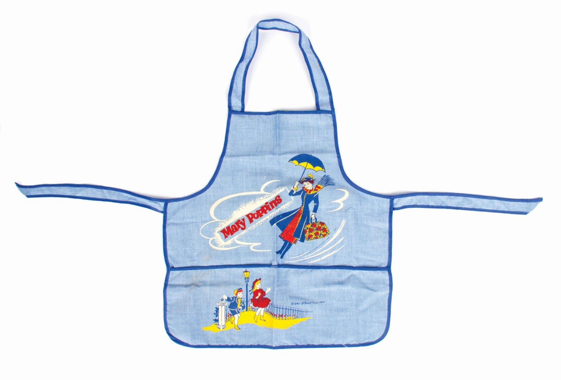 (Disneyland, 1964) A souvenir child's apron featuring imagery from "Mary Poppins". This apron measures 17"x17" and is in fine condition with some fold-creases from storage and a small blemish along the neck-line.