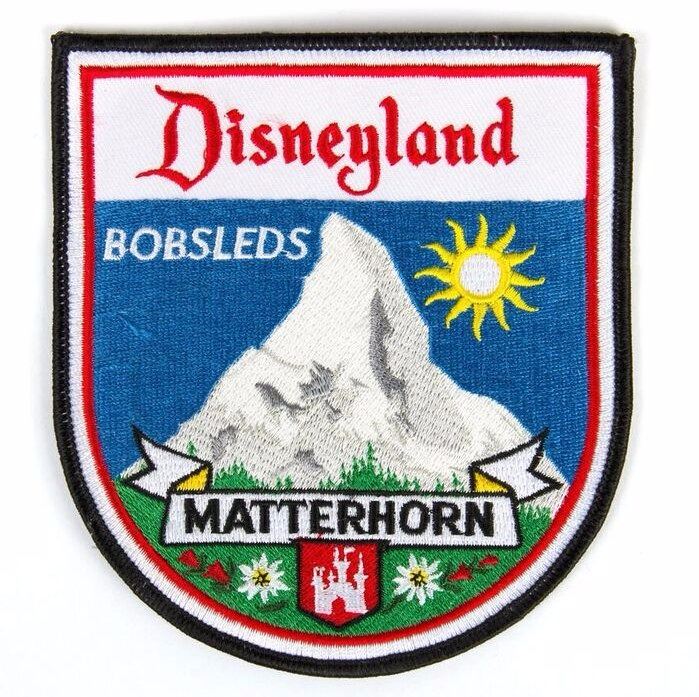 (Disneyland, c.1990s) A large embroidered cast member uniform patch from the "Matterhorn Bobsleds" attraction. This patch features the Matterhorn Mountain below the name Disneyland and still retains its vibrant color. This item measures 5"x4.5" and is in very good condition with little wear.