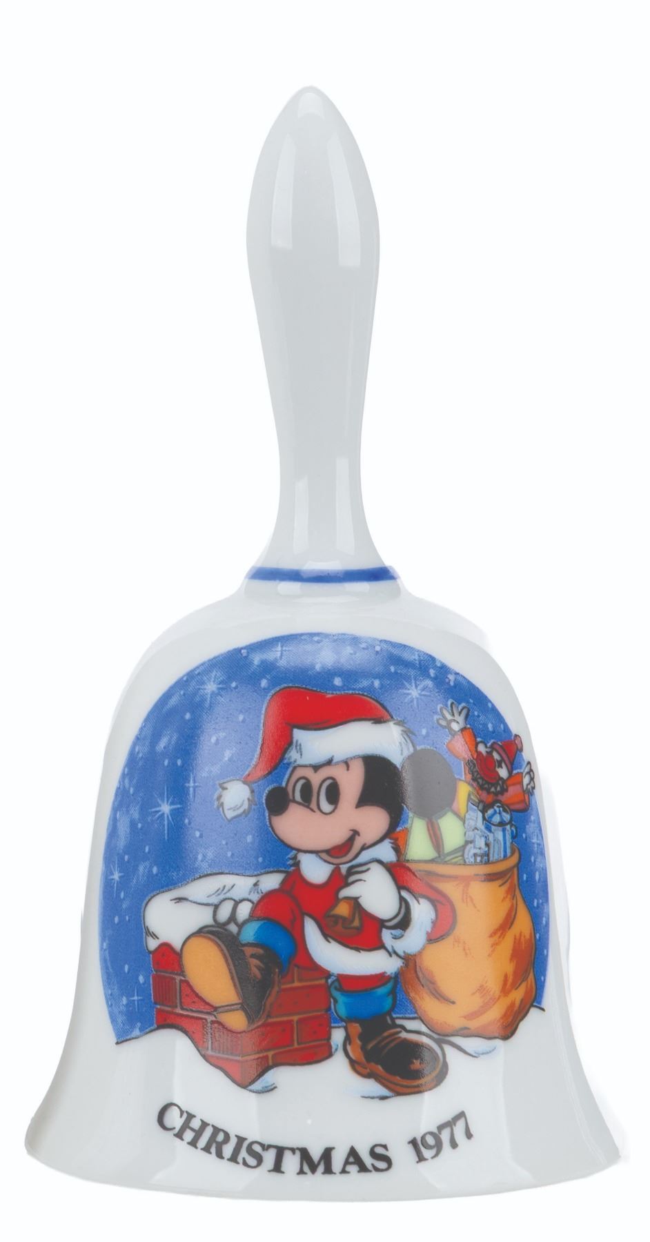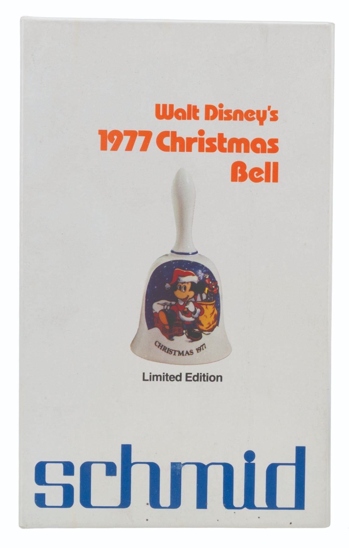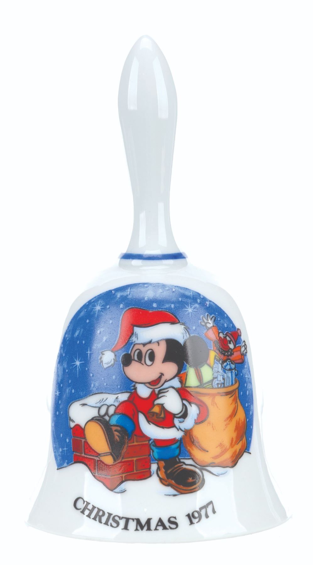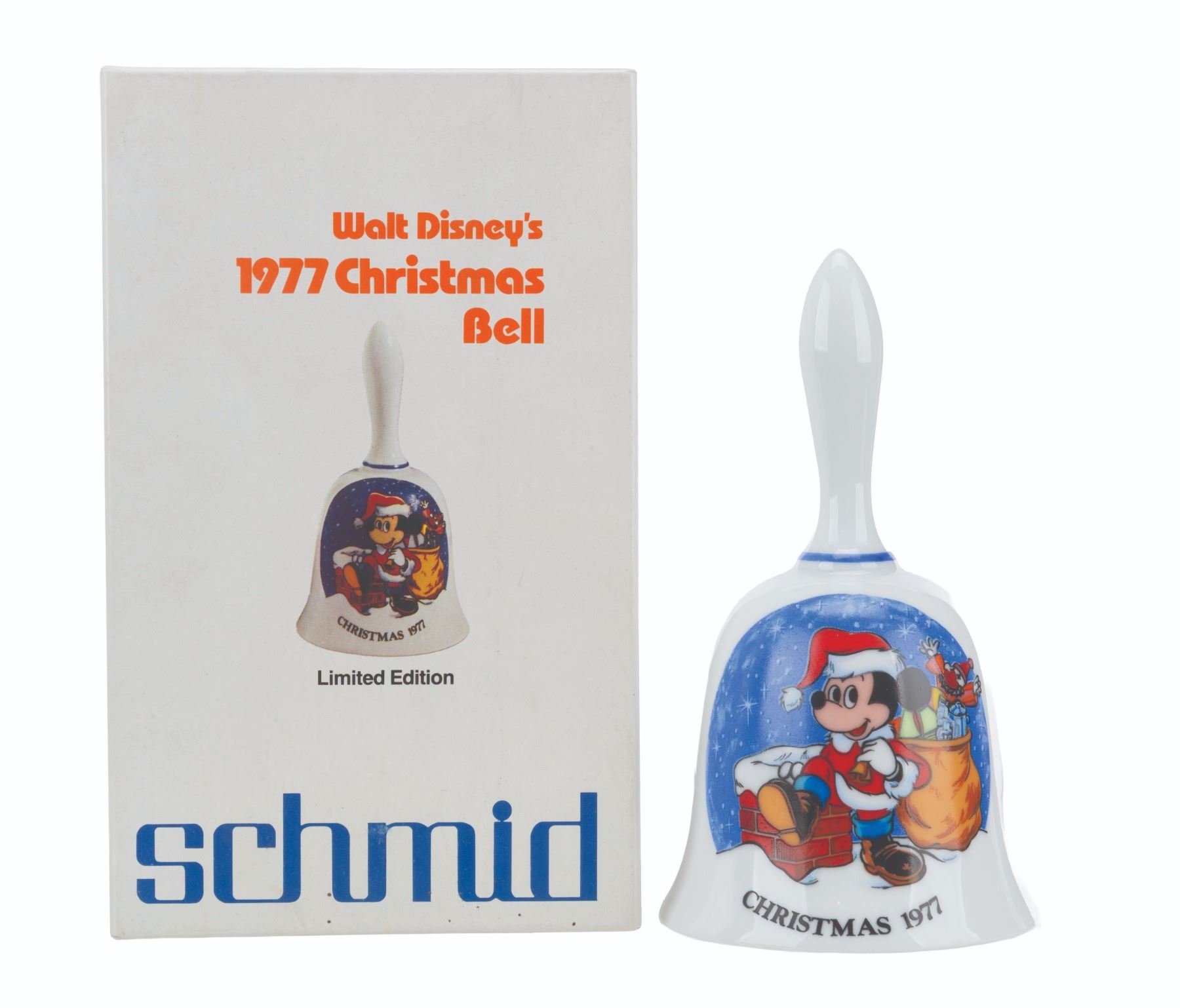 (Schmid, 1977) A ceramic Christmas bell featuring Mickey Mouse as Santa. Measuring 3.25" diameter x 5.75" tall, the bell is in fine condition, with the original box in very good condition.
