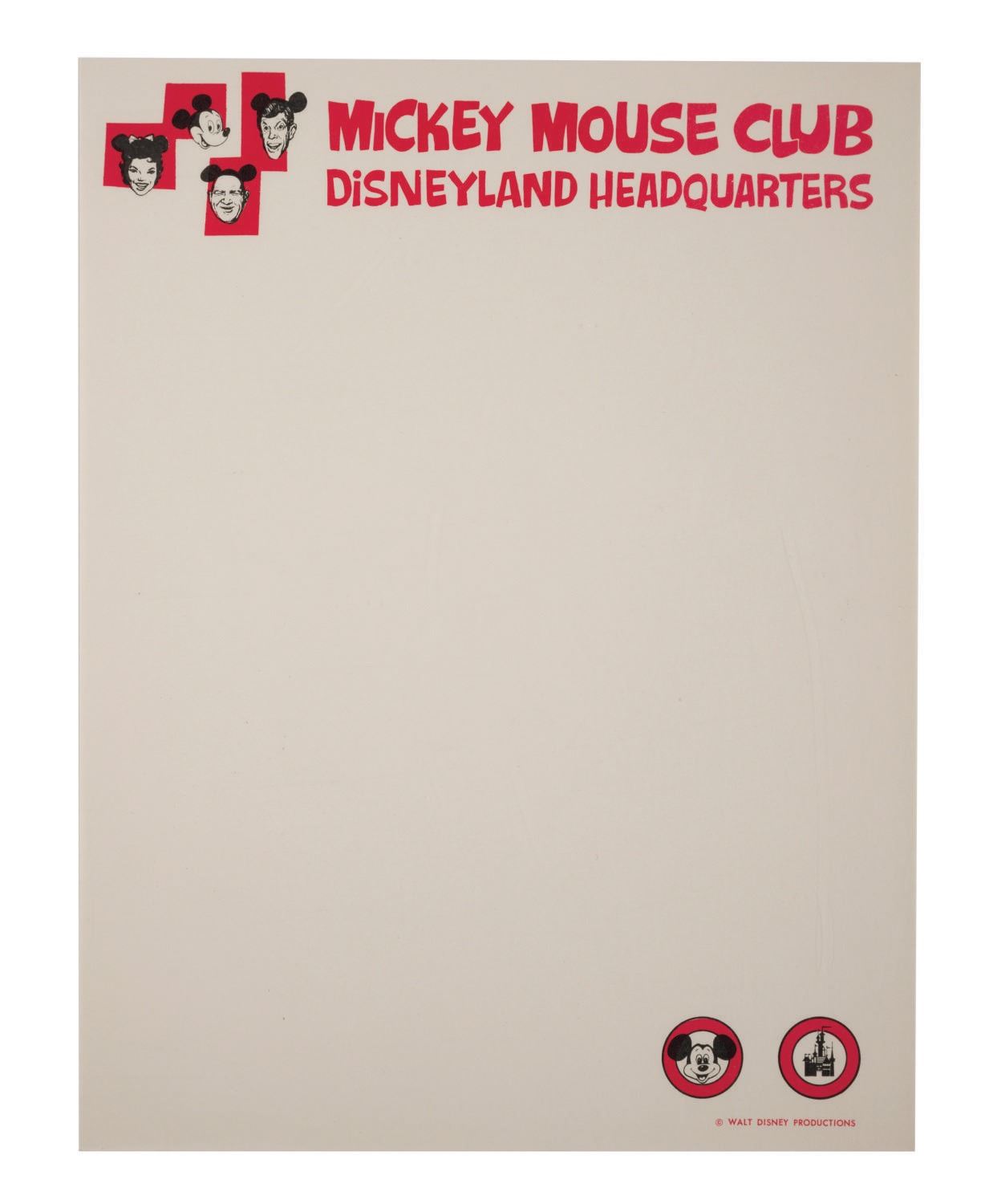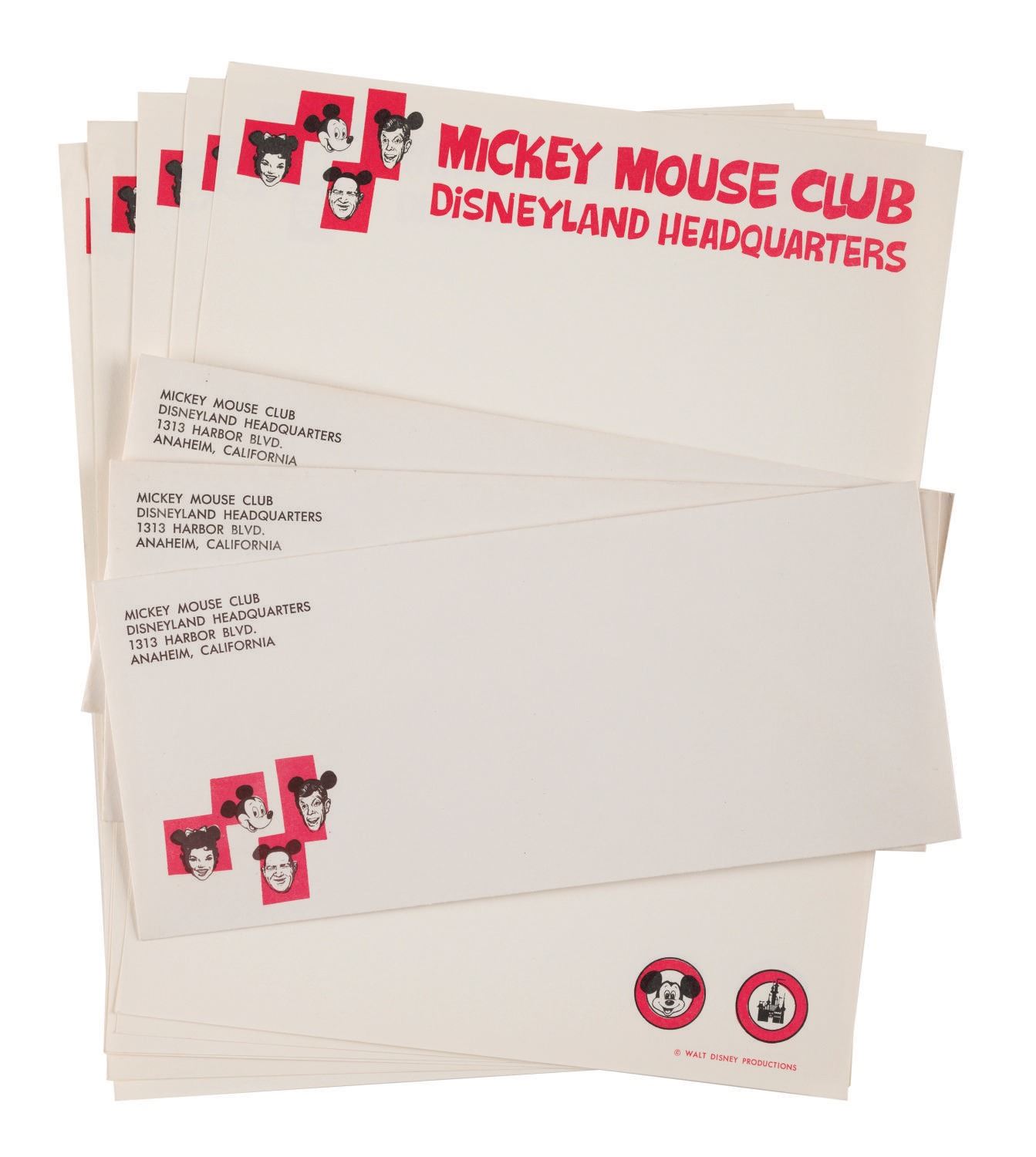 (Disneyland, 1963-64) A collection of (6) pieces of stationery and (3) envelopes for the Mickey Mouse Club Headquarters at the Main Street Opera House at Disneyland. Measuring 8.5"x11" and 9.5"x4.25", the stationery and envelopes are in fine unused condition.