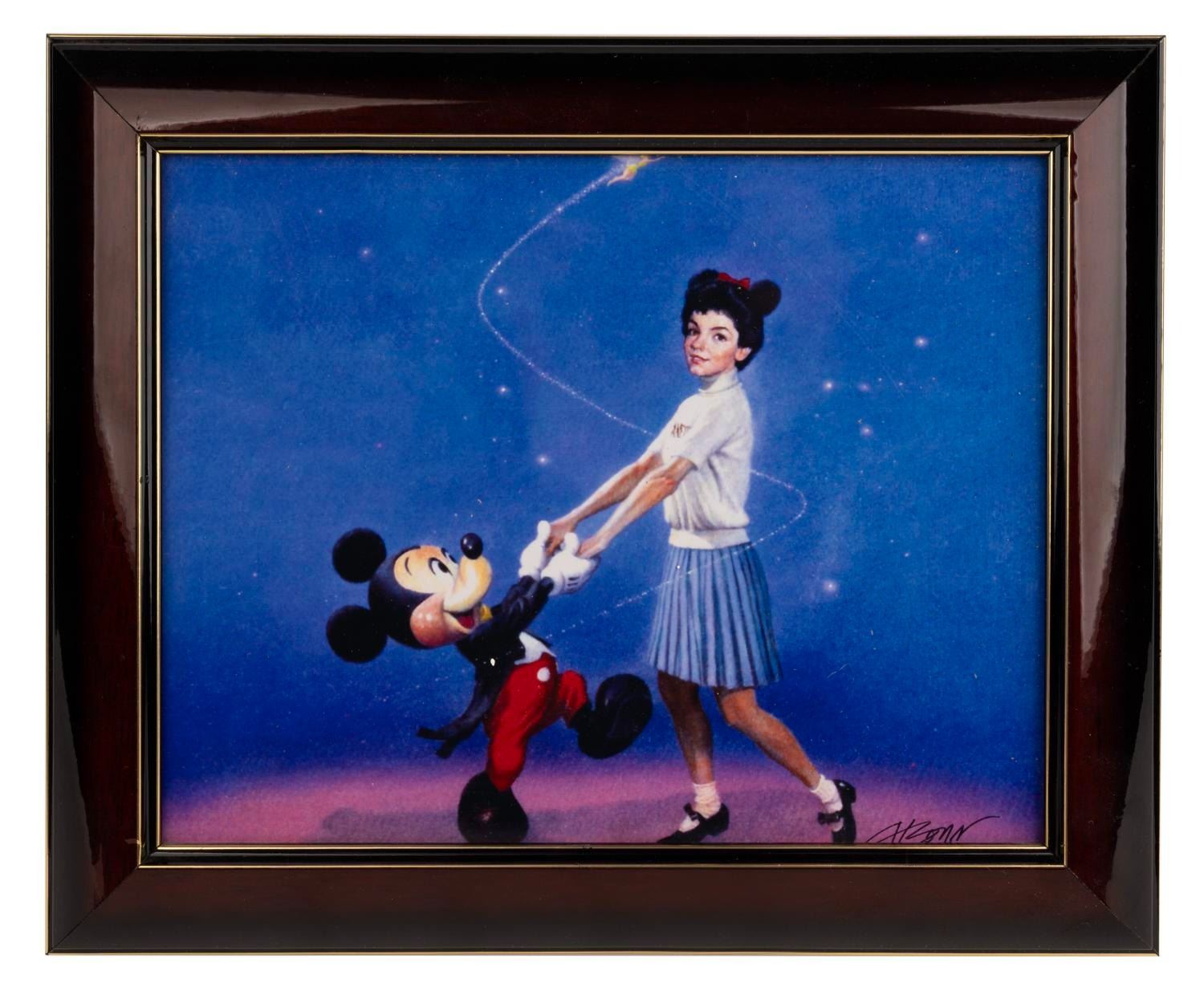 (Disney, 1990s) An original pair of Mickey Mouse ears signed by legendary Mouseketeer Annette Funicello. Included is a fan-printed copy of "Sweethearts Forever" signed by the artist, Charles Boyer. The ears measuring 10.5" wide are in fine condition, with the 8" x 10" signed copy in very good condition.