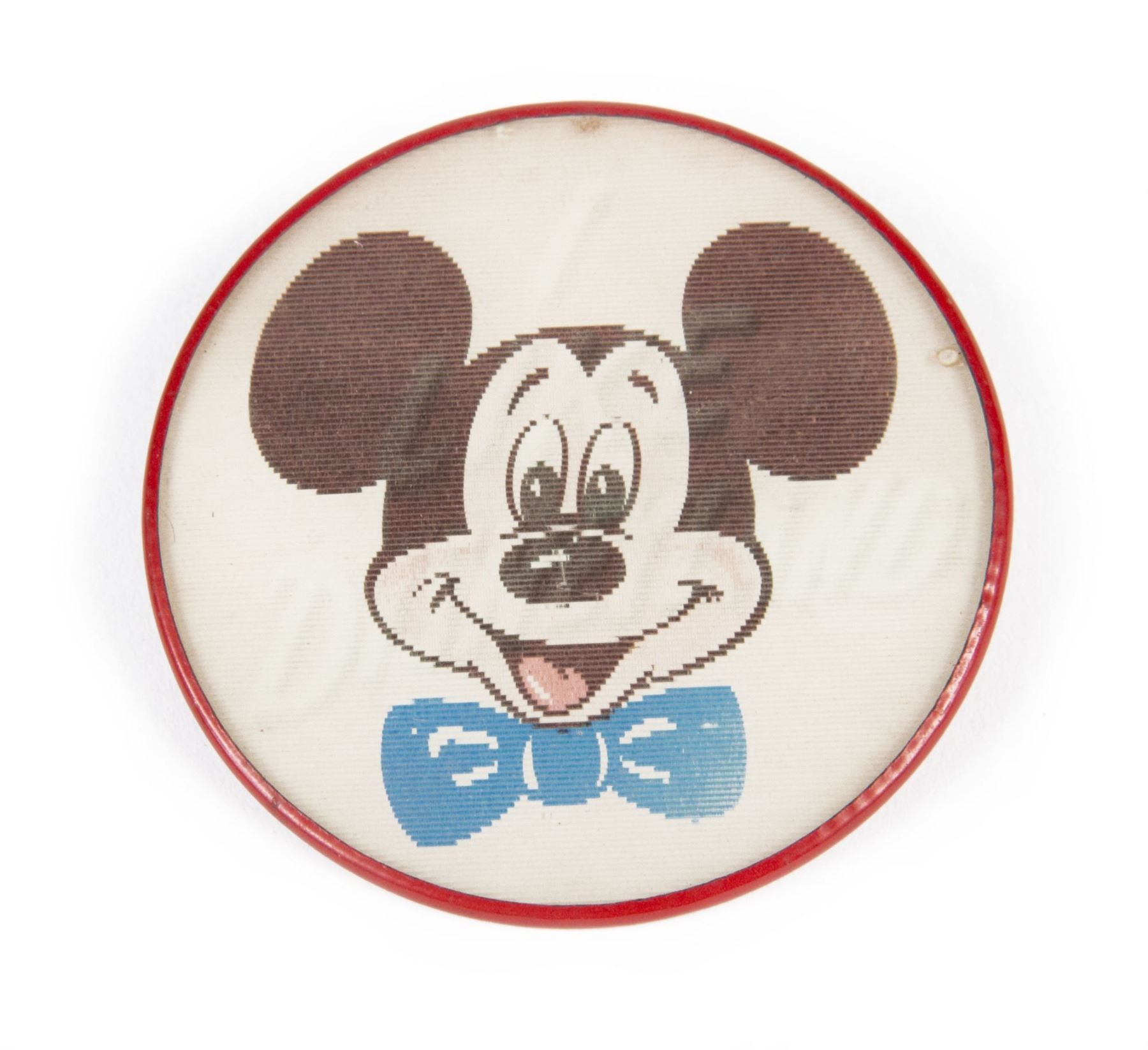 (Disneyland, c.1960s) A lenticular button that changes between an image of Mickey Mouse and the phrase "I Like Disneyland". These types of buttons have been a popular Disneyland souvenir since the earliest years of the park, with this particular button likely dating to the early 1960s. Measuring approximately 2.5" in diameter, the button is in very good condition with minor wear from use. The back side reads "Disneyland" with a Walt Disney Productions copyright.