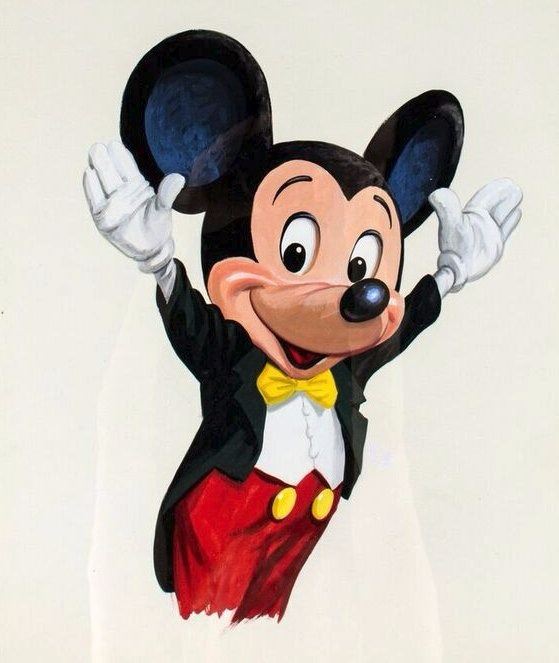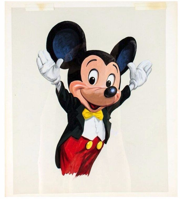 (Disneyland, 1980s) An original illustration of Mickey Mouse created for a travel agency to be used in promotional materials for the Disney parks. Attributed to well known Disneyland artist Charles Boyer, this image of Mickey is accomplished in acrylic on artist's board with the project information written on a paper cover over the front. This item measures 16"x14.25" and is in very good condition.