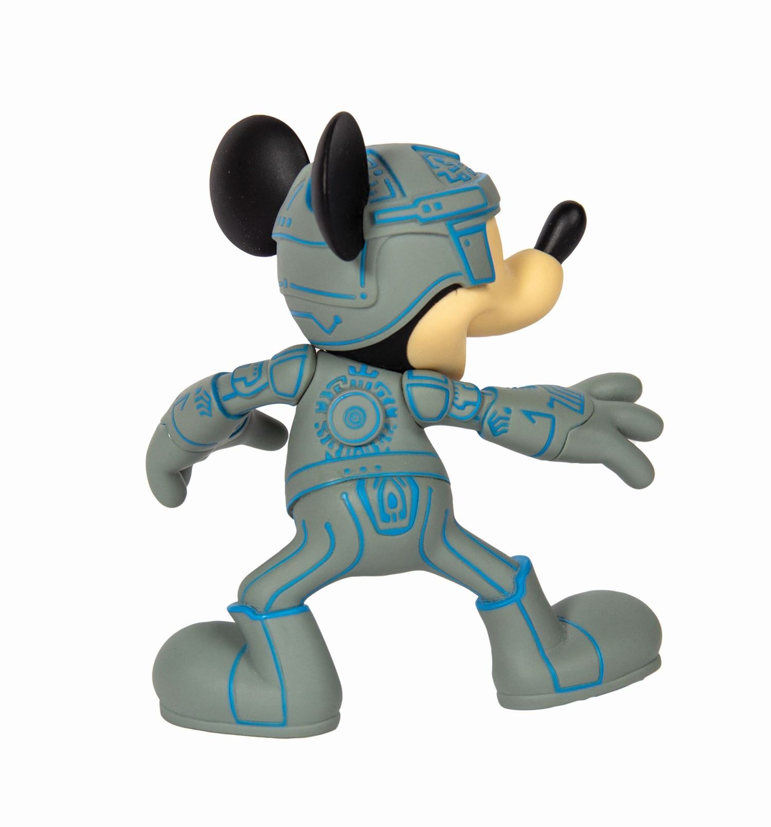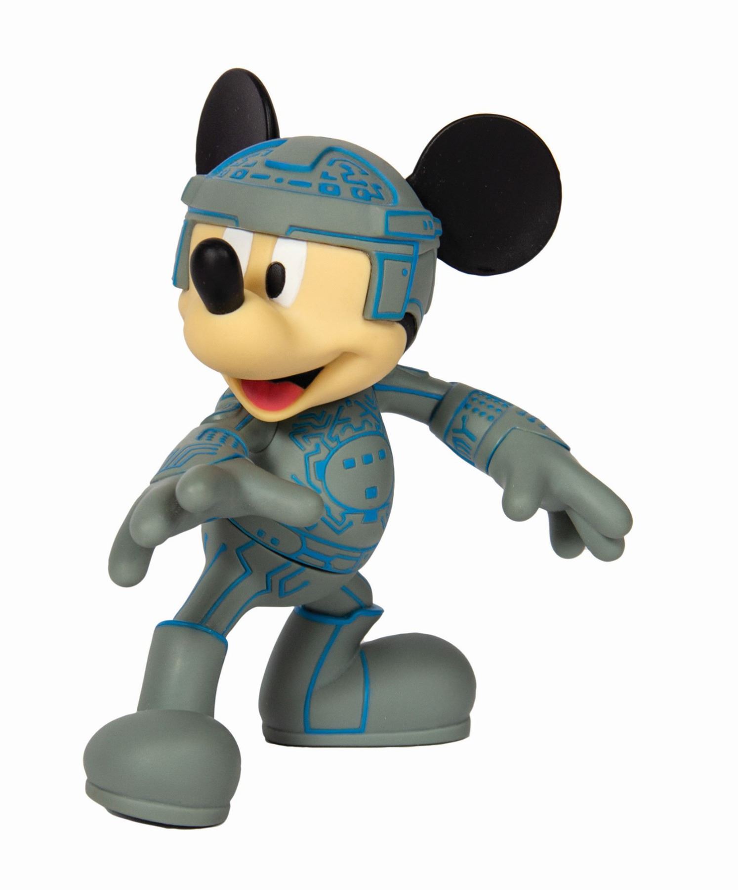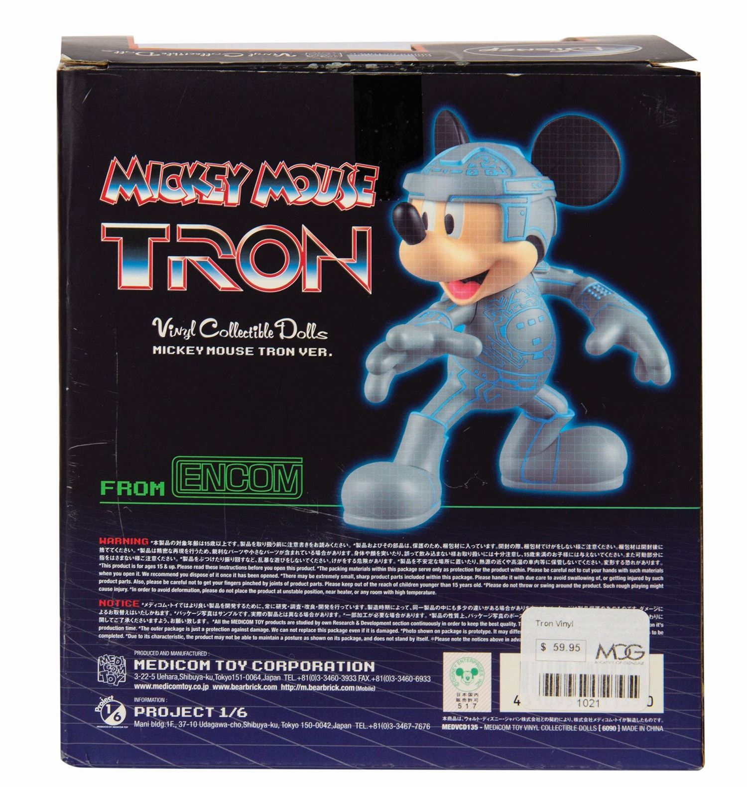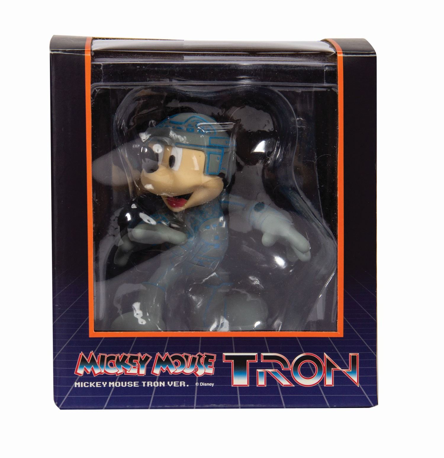 (Disney, 2010) A vinyl figure of Mickey Mouse in a Tron costume. The figure was created in anticipation of the 2010 release of Tron: Legacy. Measuring approximately 5" tall in the 5.75"x6.25" and 7" tall box, the figure is in very good condition with minimal wear. There is some edge-wear to the box.