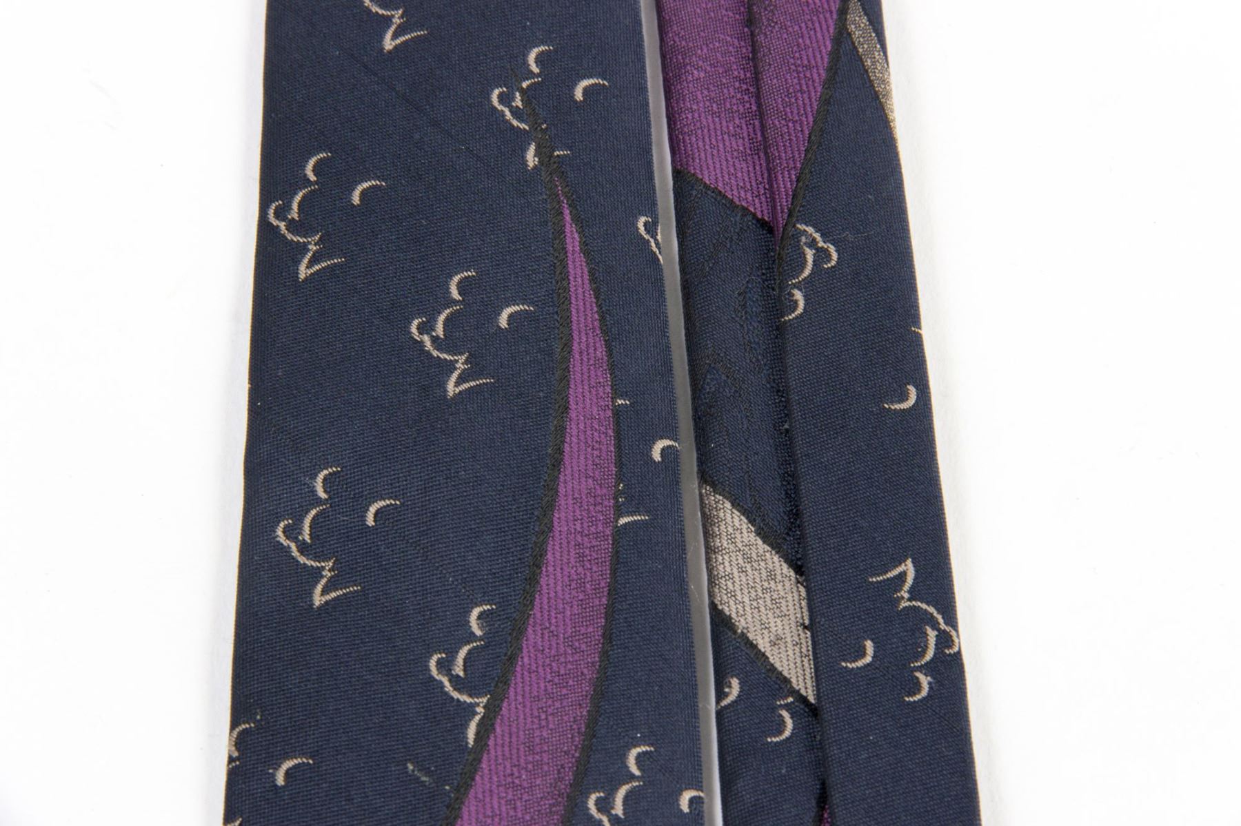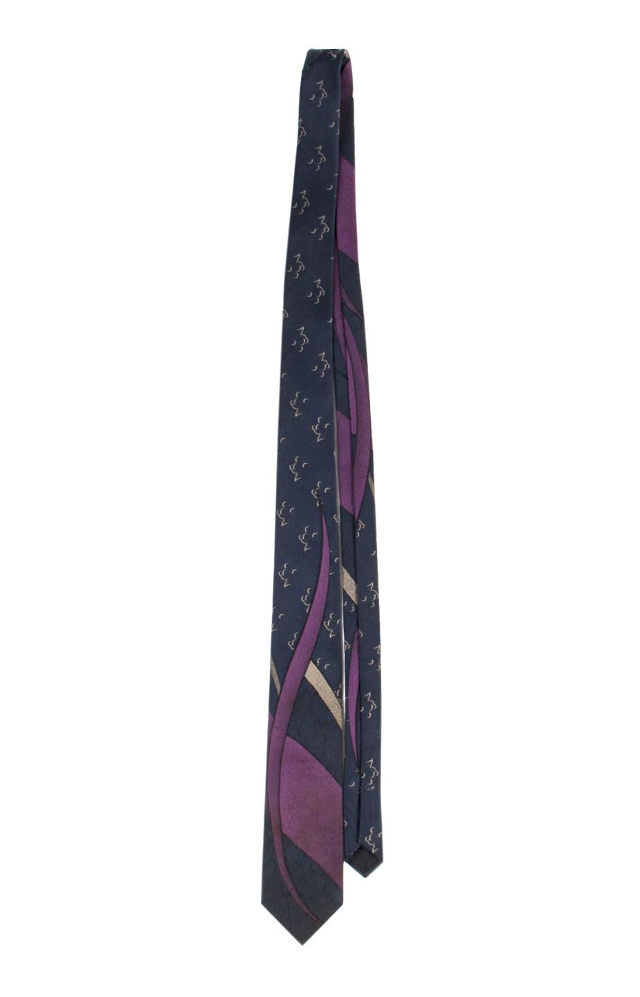 (Disneyland, c.1990s) A purple and gold tie with a Mickey silhouette logo pattern. Believed to be a cast member tie, this stylish item was created by Millennium and measures 57" long. The condition is very good with minor wear from use.