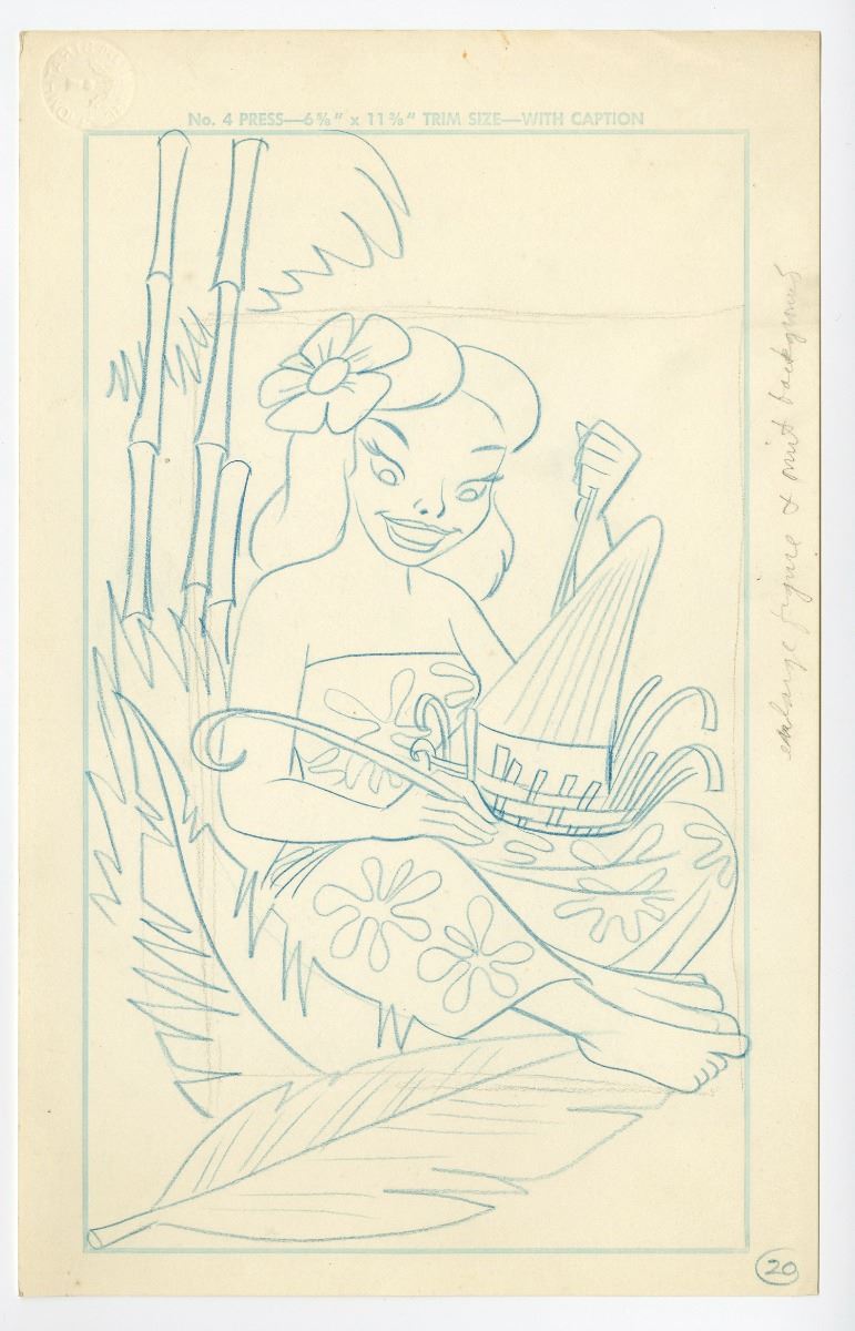 (Dell, 1956) Original pencil artwork by Animator/artist Milt Banta for a Dell published Disneyland coloring book. An unused copy of the book is included. Accomplished in graphite and colored pencil on 7"x11.5" Strathmore paper. In fine condition.