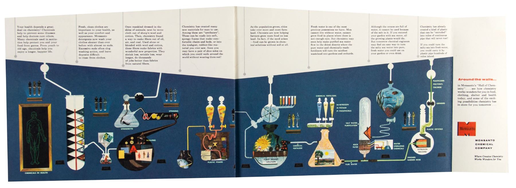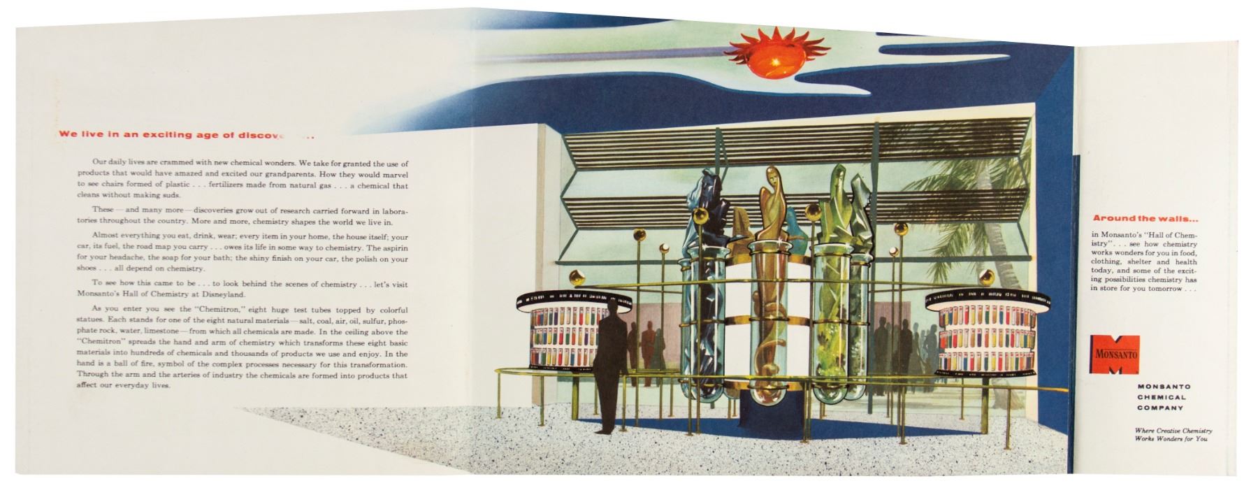 (Disneyland, 1955) A beautifully illustrated exhibit fold-out for the Monsanto "Hall of Chemistry" exhibit in Tomorrowland. This item measures 7â€x9.5†and is in fine condition with very little wear.