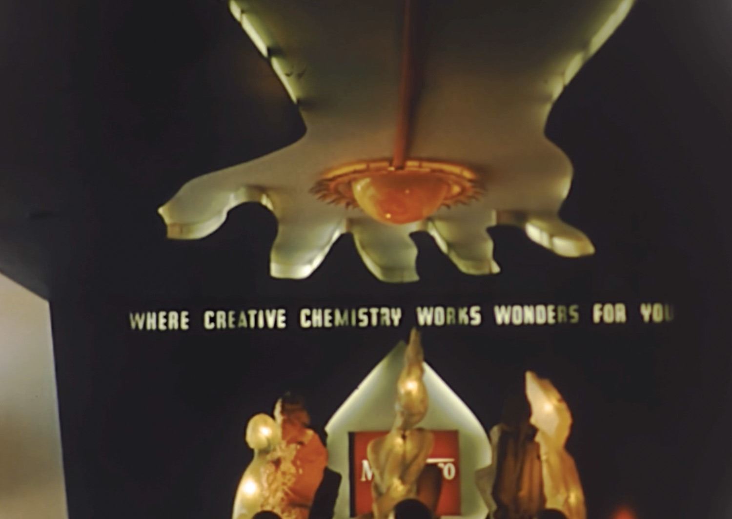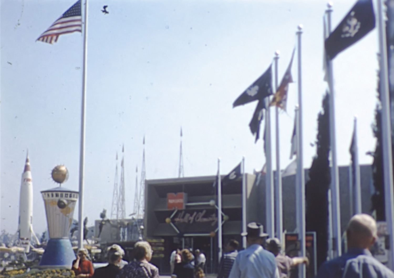 (Disneyland, c.1957) An extremely rare 16mm film featuring the Monsanto Hall of Chemistry in Tomorrowland. This opening year attraction clearly showed Walt Disney's desire to not just entertain, but also to educate and inform his park guests. The film comes from the collection of Disney Legend Milt Albright, and contains 1 minute and 2 seconds of rare silent color footage of the exhibit's exterior facade and interior displays. This incredible and scarcely seen footage from the park's earliest years comes in a 3.75" in diameter metal canister, as stored by Albright. The film has been tested and is in very good condition with minor wear from use.