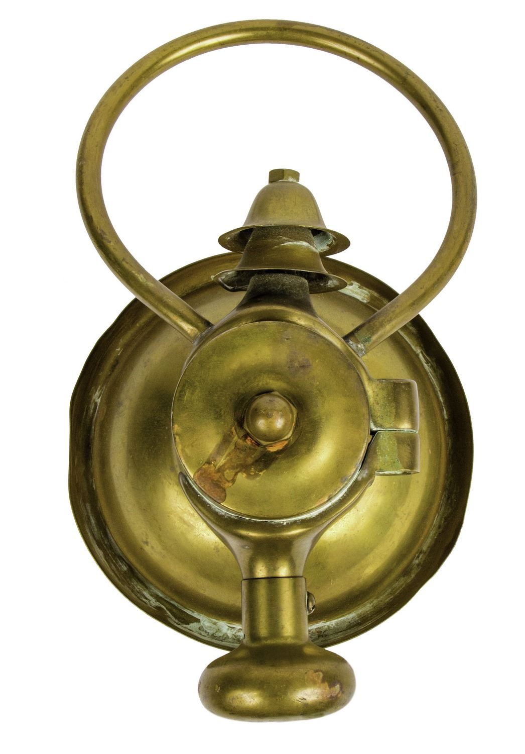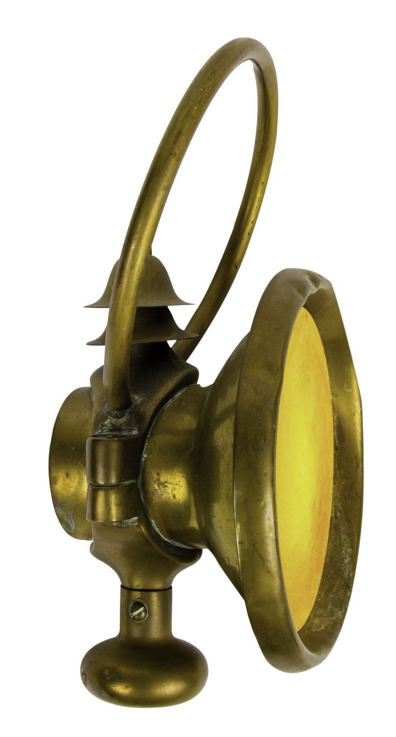 (Disneyland, c.1960s-70s) A very rare headlamp prop from Disneyland's "Mr. Toad's Wild Ride" attraction. This headlamp is made of metal with a hand-painted orange light effect in the front. This headlamp measures 11" tall and is in good condition with a slight bend to the handle and some scuffing and small dings to the metal from use.