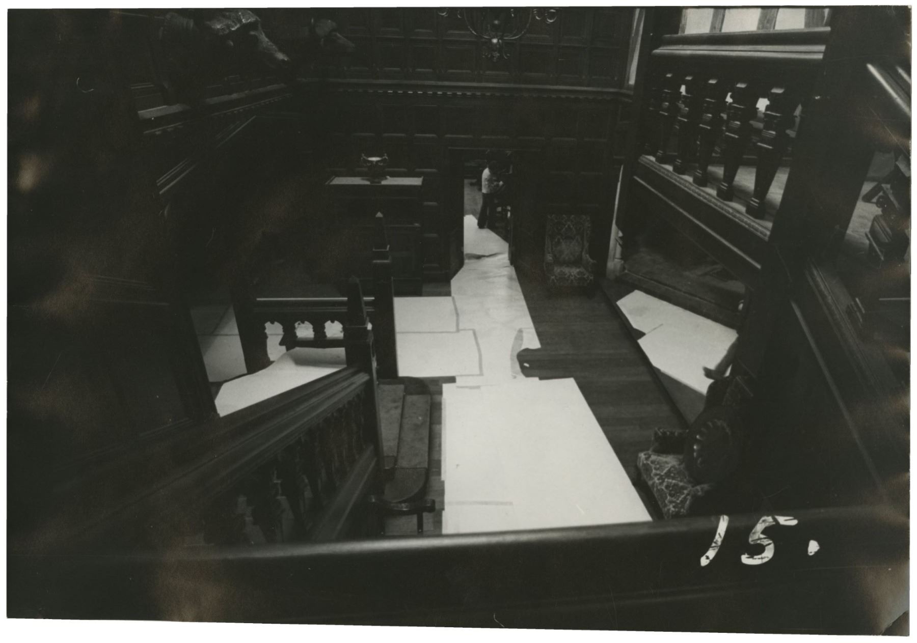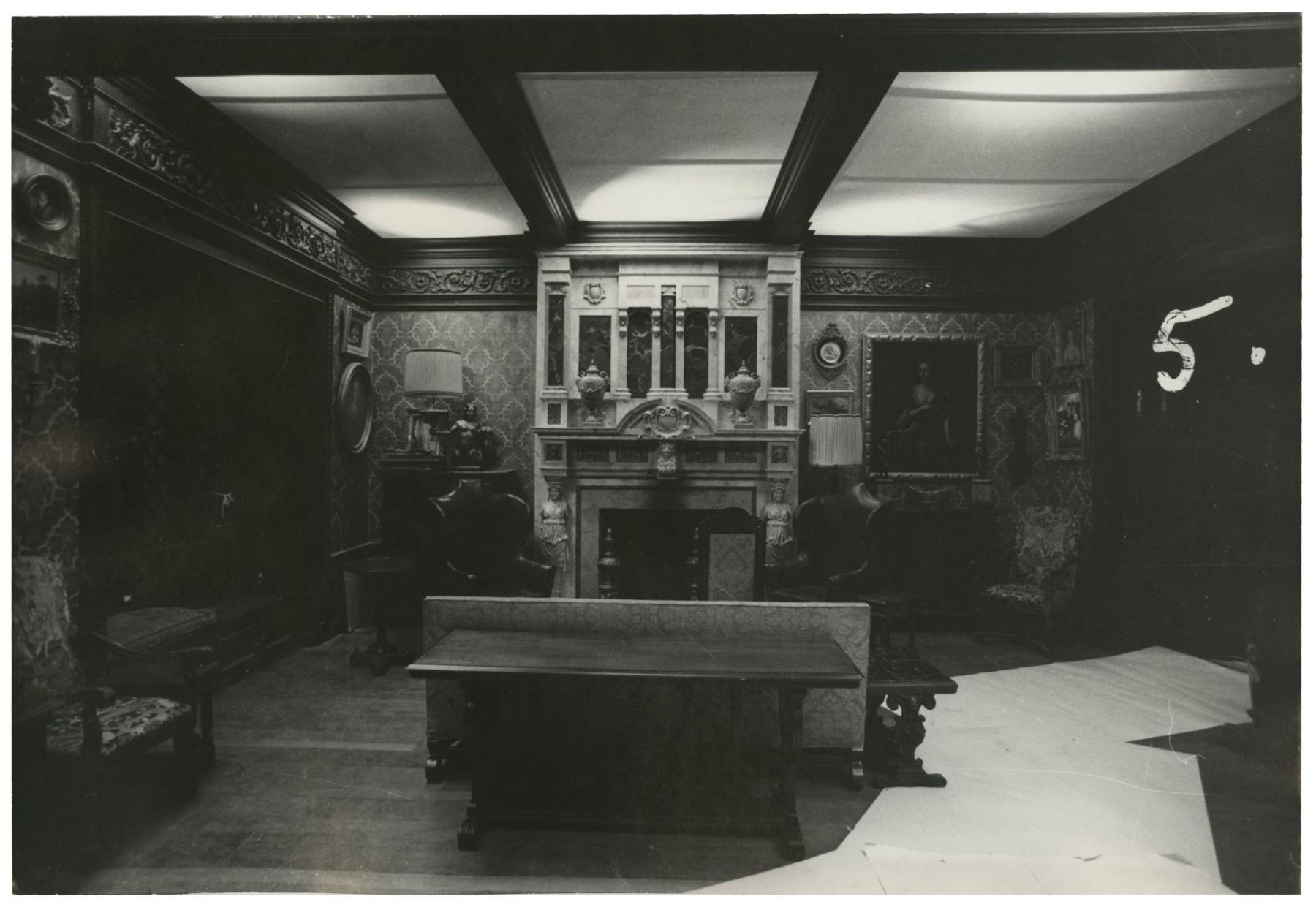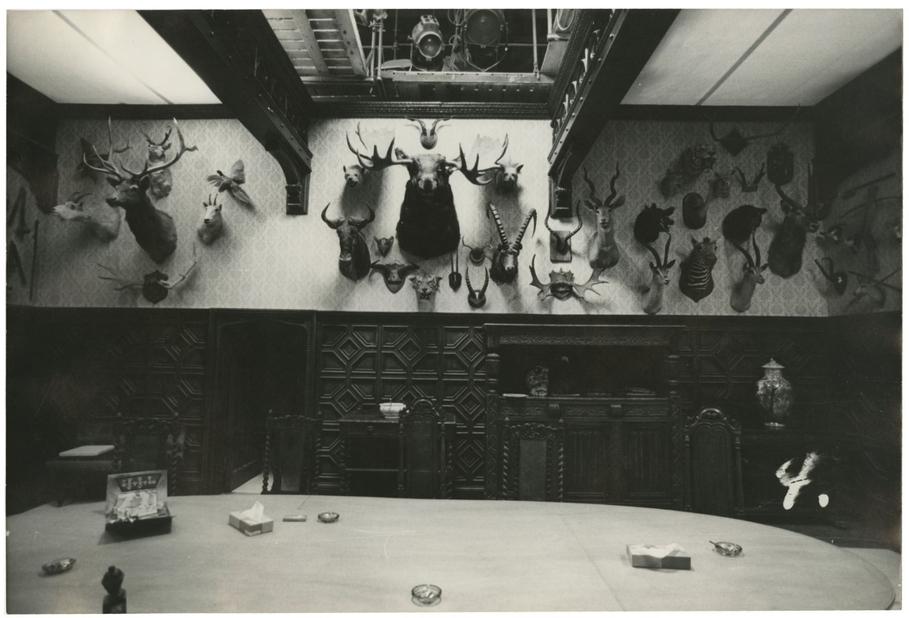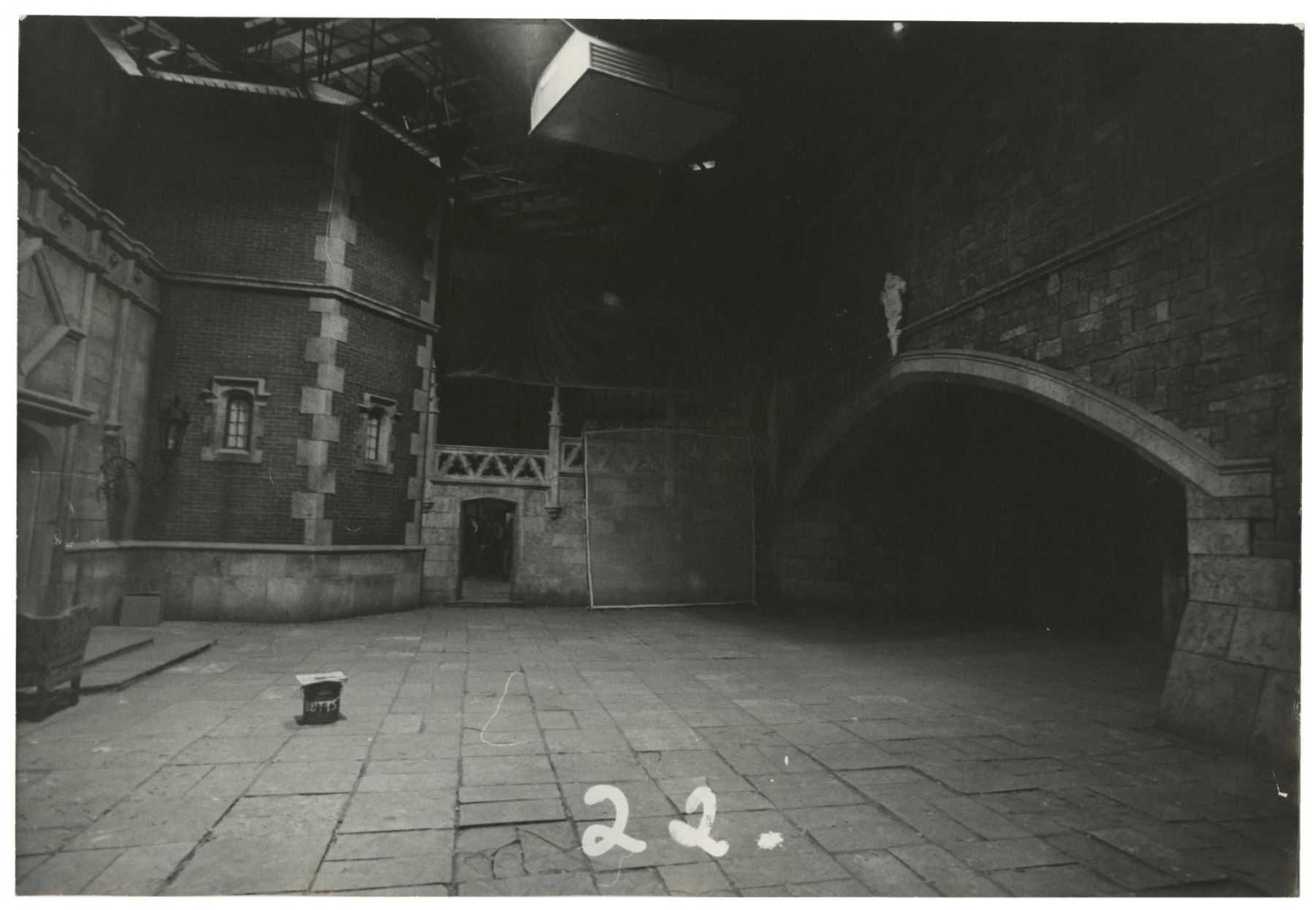 (Columbia, 1976) A set of (10) black and white reference photos of the production set used in the feature film "Murder by Death". These photos highlight many aspects of the iconic mansion seen throughout the film such as the dining room and the exterior of the mansion, and provide angles and details that would otherwise be difficult to observe. The photos measure 9.5"x14" each, and the condition is very good overall with some waviness to the paper and minor creasing from use and age.