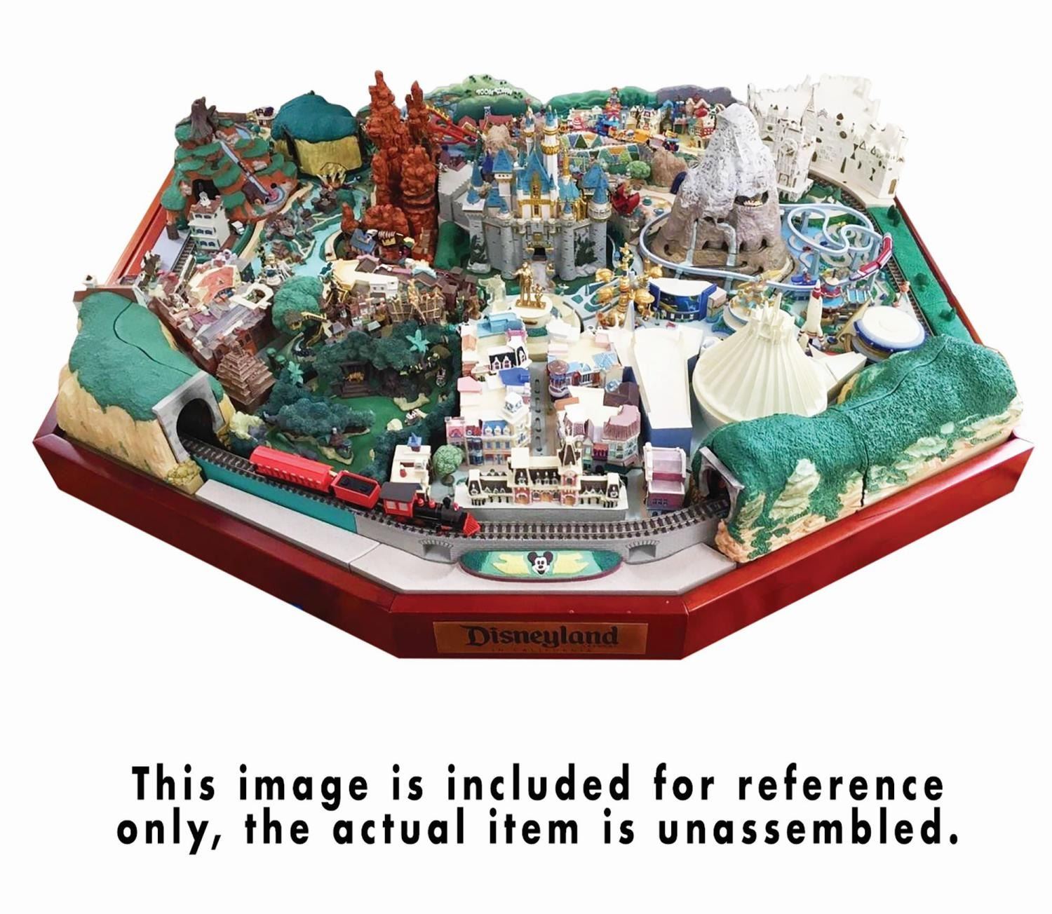 (Disneyland, 2009) An extremely rare and immense model set titled "My Disneyland" manufactured by the Japanese company DeAgostini. The set is comprised of 100 individually boxed kits, and scarce few dedicated fans have ever been able to collect all the components, let alone build the entire model. This lot contains all (100) kits that make up the complete My Disneyland set, along with an additional (25+) duplicate kits that can be used for purposes of maintenance or repair. This comprehensive model set represents the entire park, including every iconic attraction in service at the time of its creation. A tribute to meticulous design, Easter egg details are hidden throughout, such as an Abominable Snowman within the Matterhorn and Madame Leota's crystal ball within the Haunted Mansion. The set also features a miniature train and several illuminating electronic elements. The original Japanese language instruction manuals are included. However, no knowledge of Japanese is necessary to understand and follow the pictorial step-by-step assembly guides. The set is accompanied by a large wooden display platform for the finished model. The condition of the unassembled kits is generally very good. Many of the boxes are still sealed, however some of the opened boxes are separating from their backings due to the materials used in production, but this does not affect the condition of the pieces themselves. This item may require special shipping arrangements. Please inquire for details and estimates.