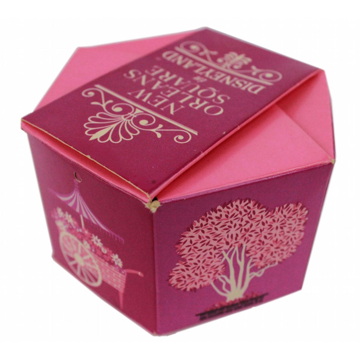 (Disneyland, 1978) A beautiful, graphic folding presentation box from Mlle. Antoinette’s Perfumier Shop in New Orleans Square. Inside is a sample perfume rose clip and a business card from the shop. Measuring 4 x 4.5 x 2.5 in. and in fine condition.